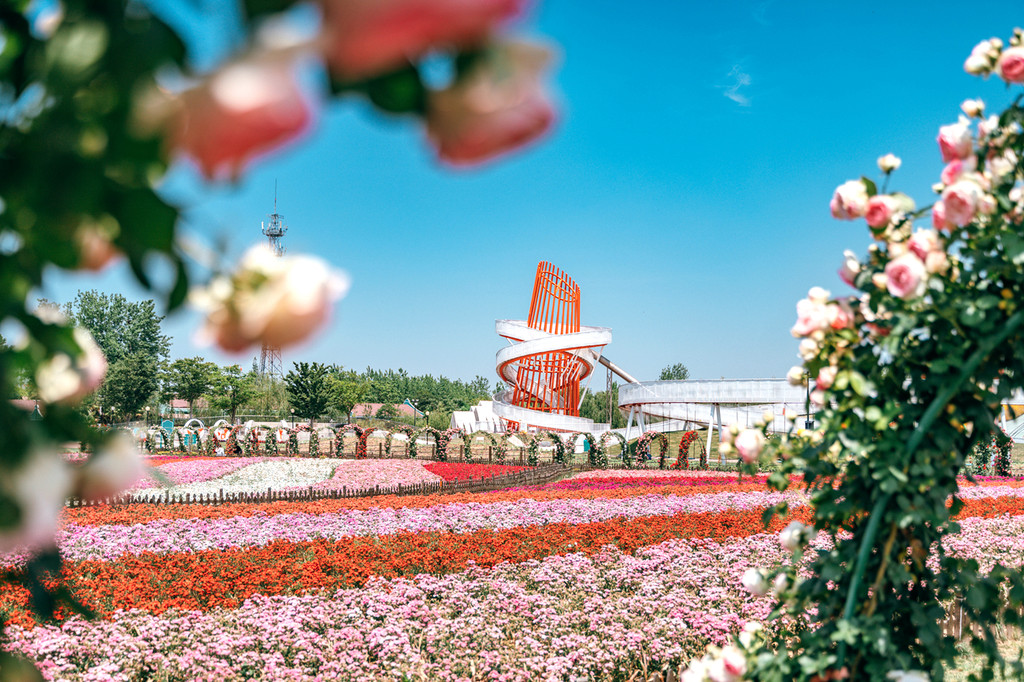 整个荷兰花海景区面积不小。周边配套也充满了欧陆风情。