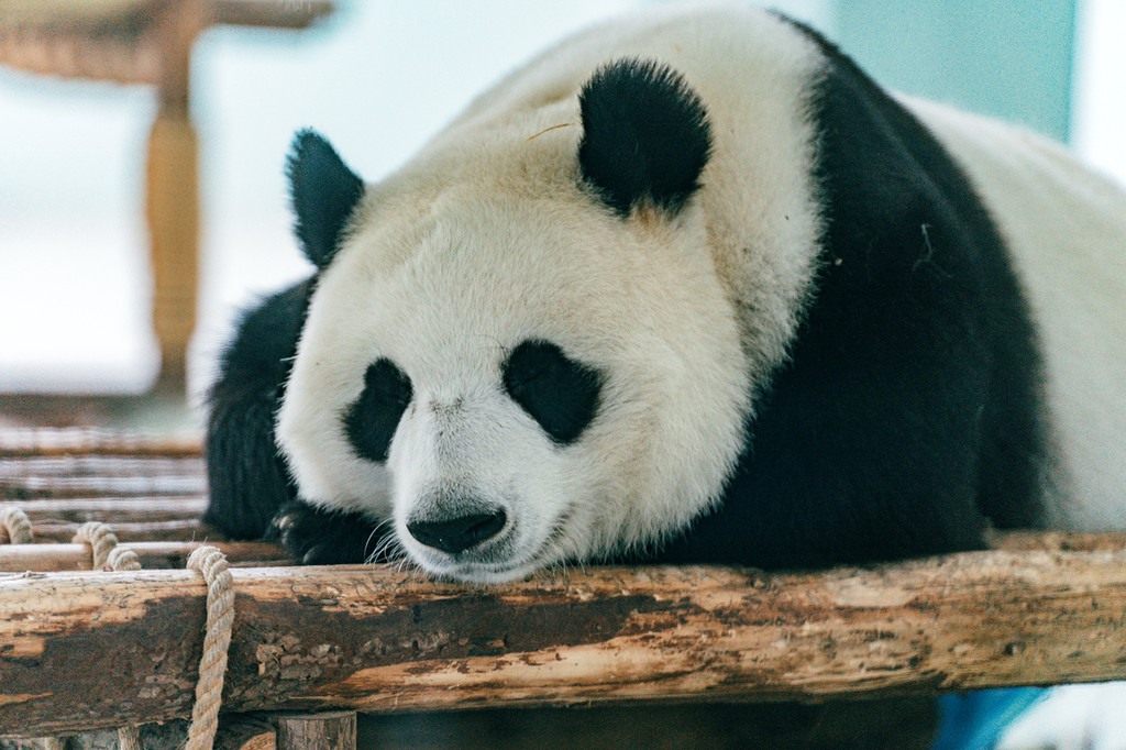 大丰港动物园的两只大熊猫叫震生和云儿,是从四川远道而来的兄妹。