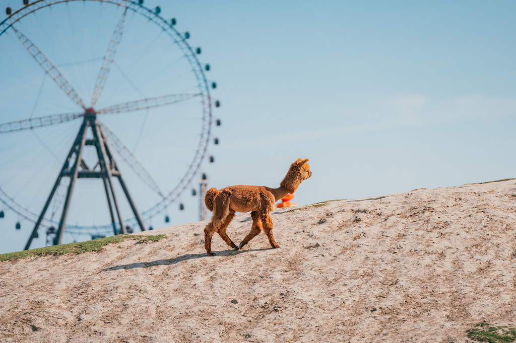 不知不觉晃到了羊驼区,和麋鹿一样,虽然也吃草,但它们的最爱却是鲜美多汁的胡萝卜~