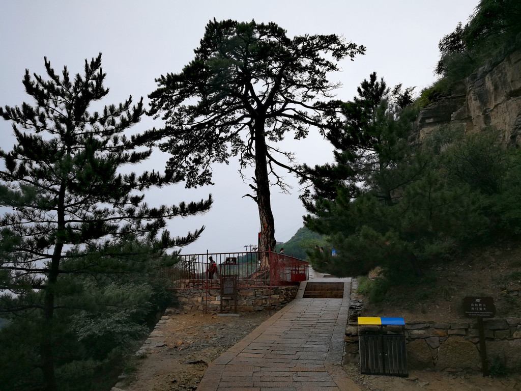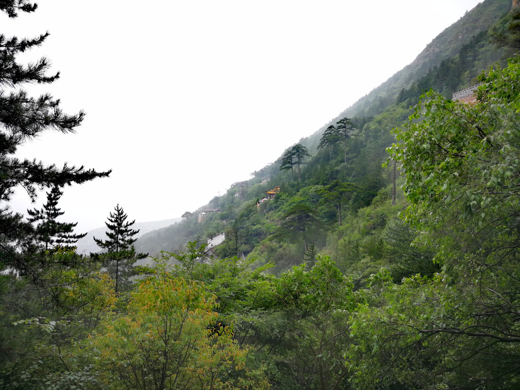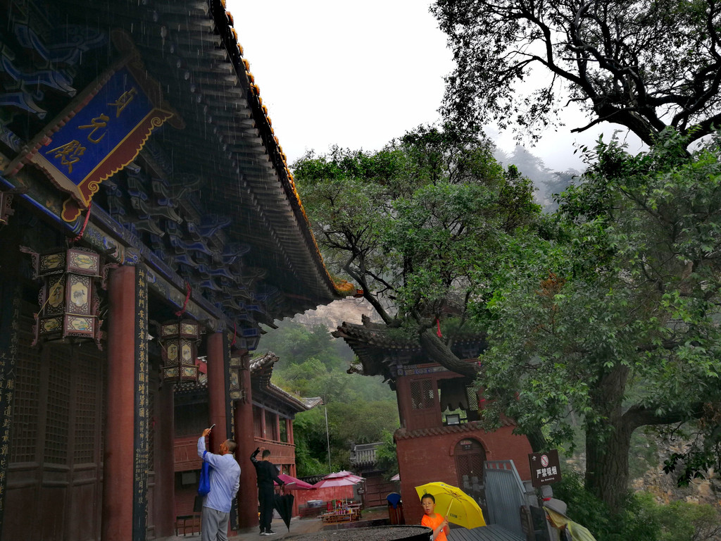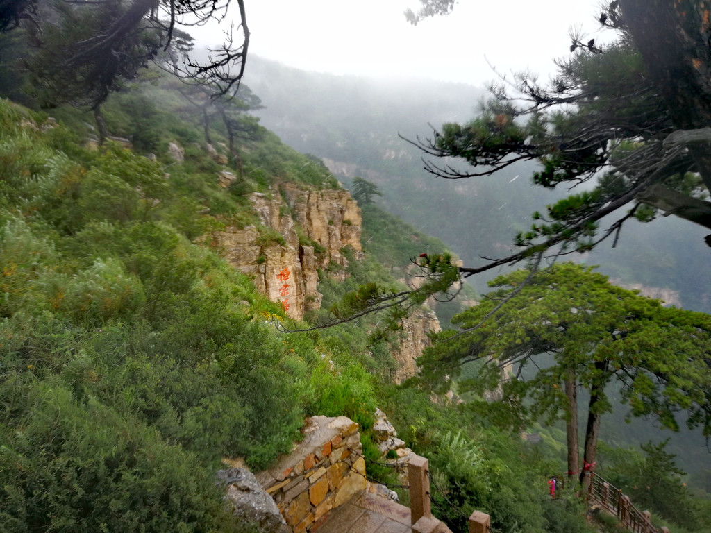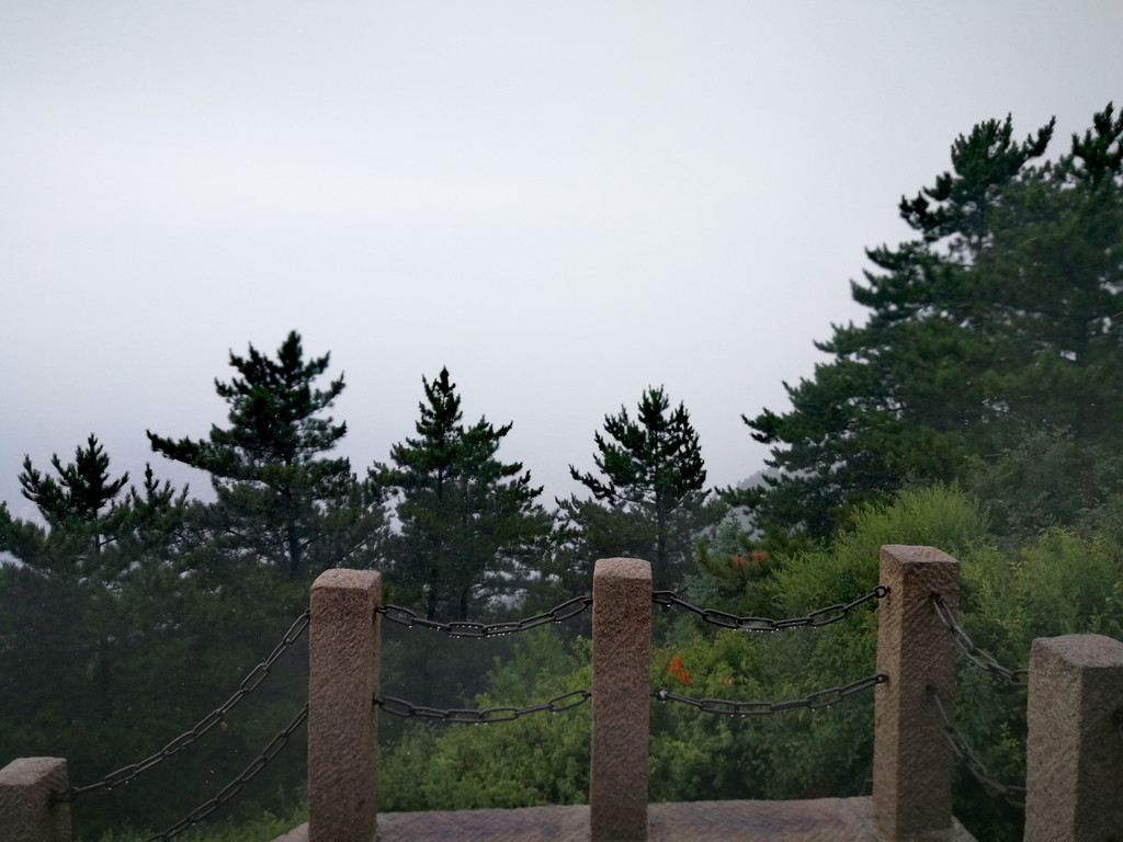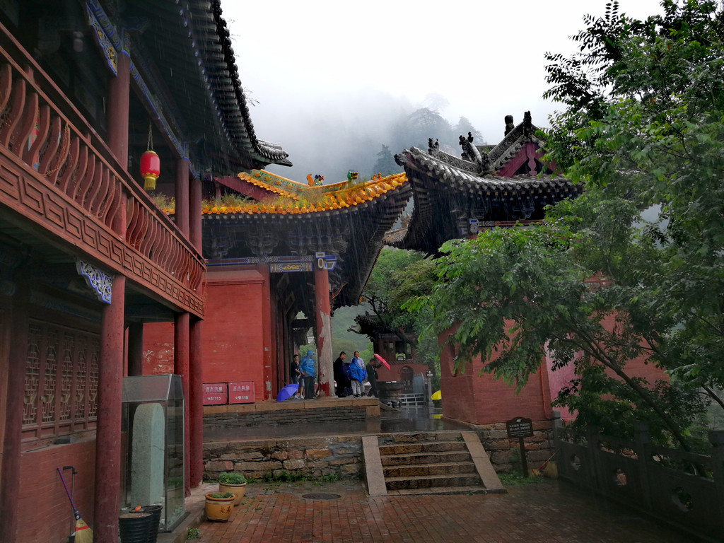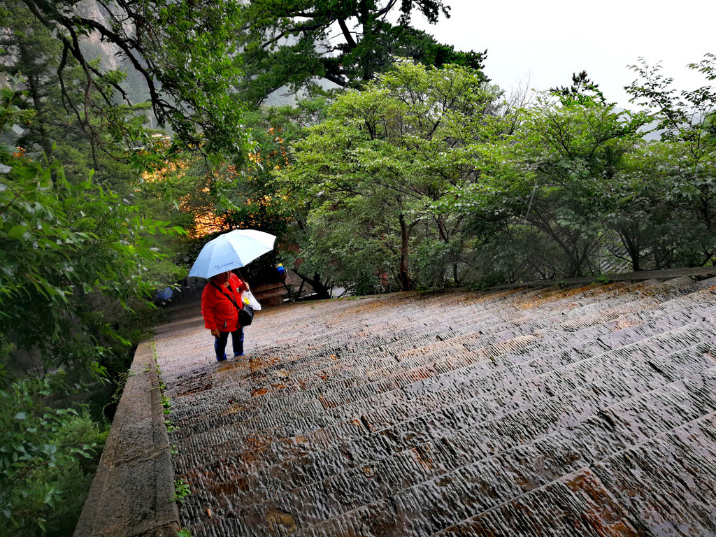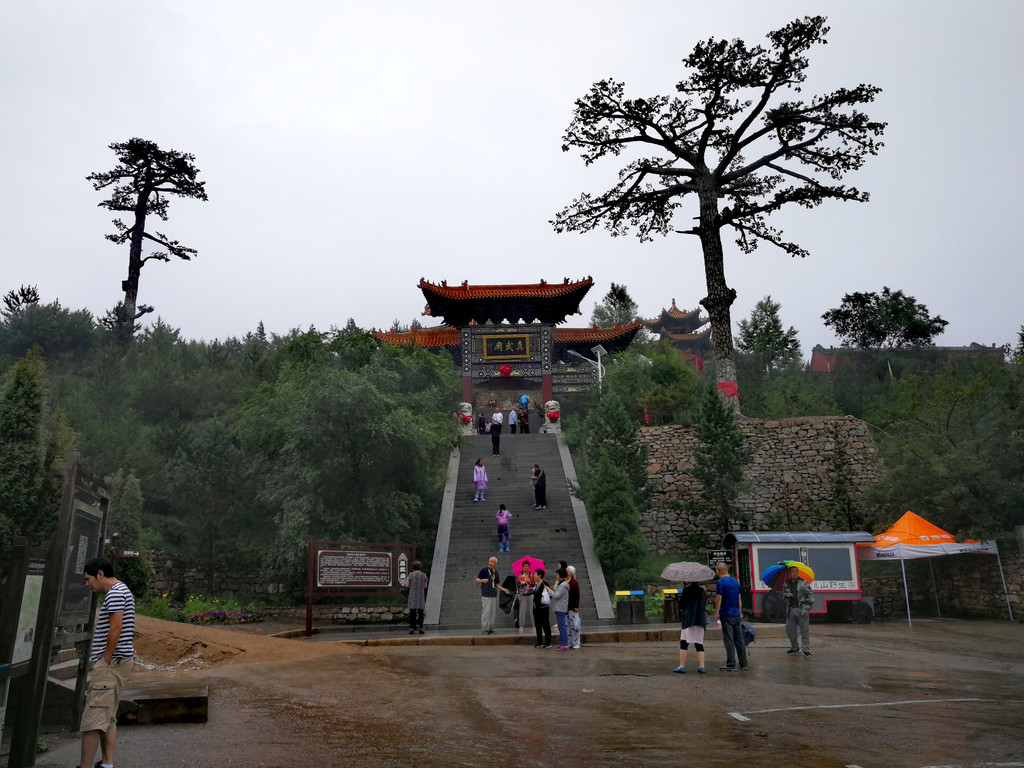 已经基本爬到山顶了,顺着往上再走一点就是恒顶了,可是山顶狂风暴雨大作,雨伞根本撑不住,收伞后瞬间湿身,寒冷刺骨,想到没有必要与大自然风雨作斗争,立马转身下山,应该留遗憾了。可是询问了爬到恒顶的人,山顶只有一个标注恒山海拔的碑,连个亭子也没有,都后悔了。