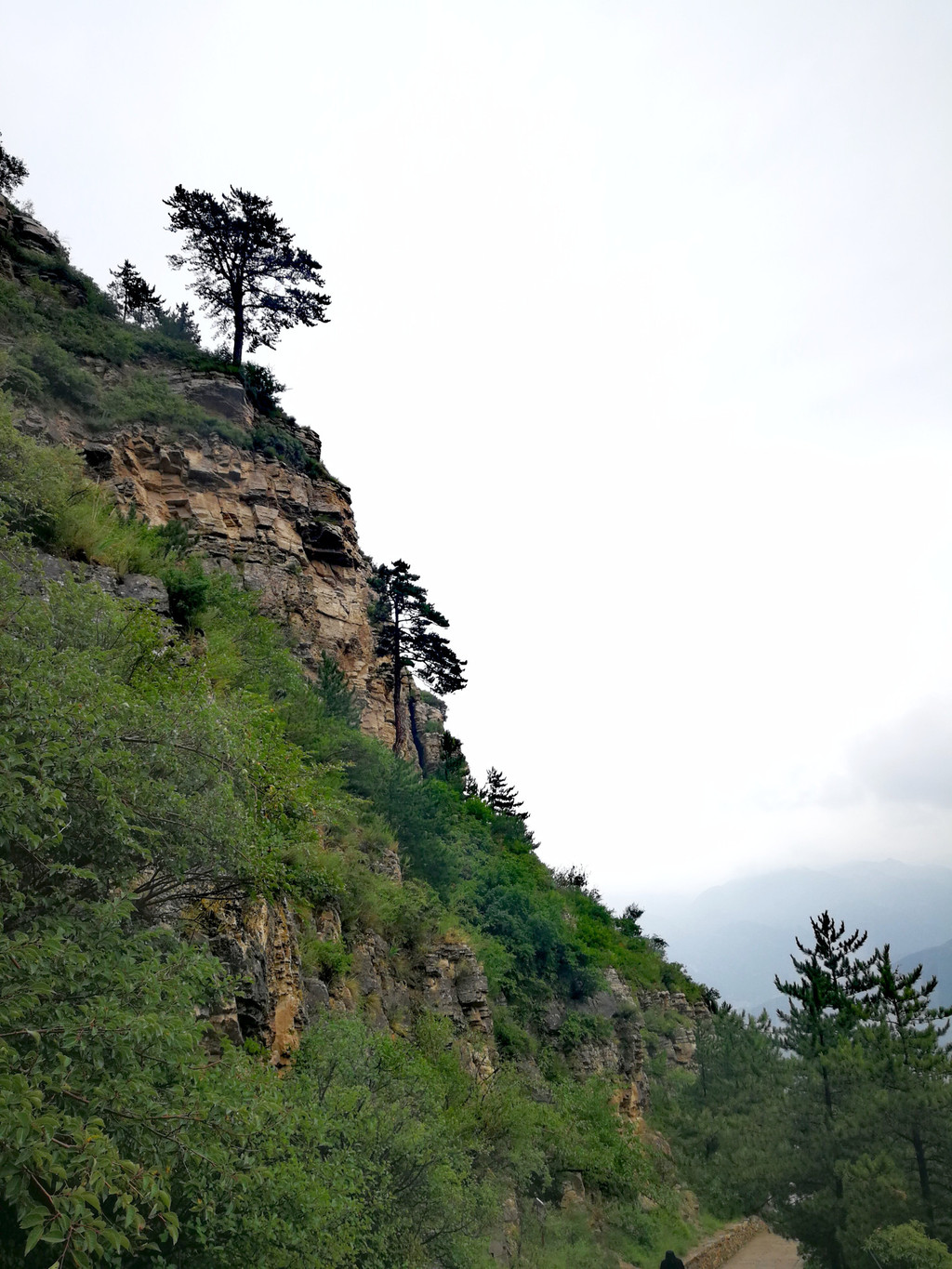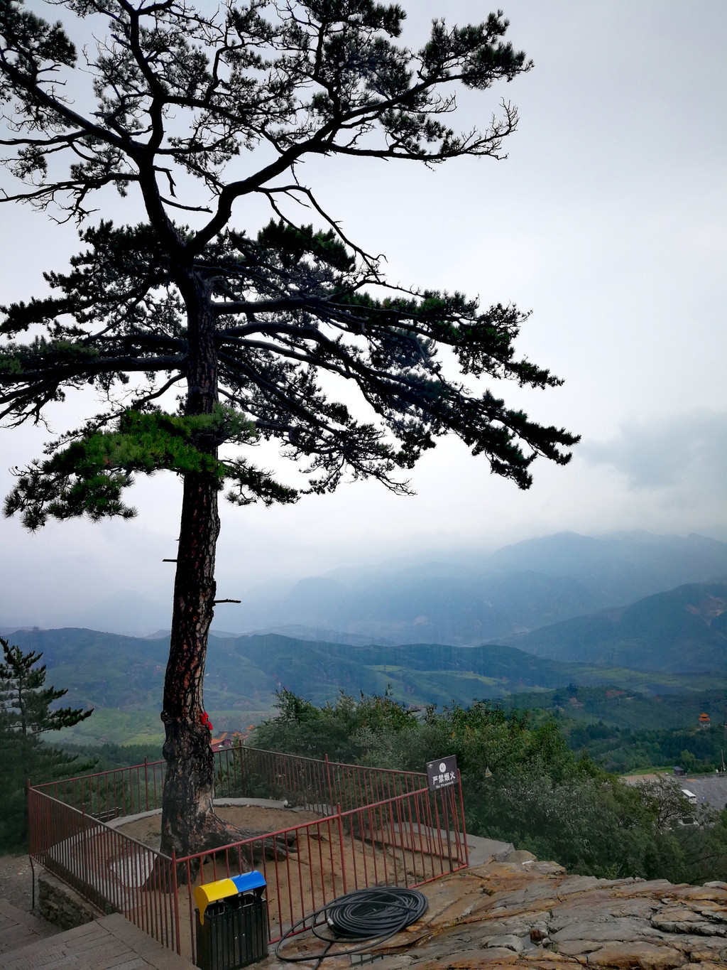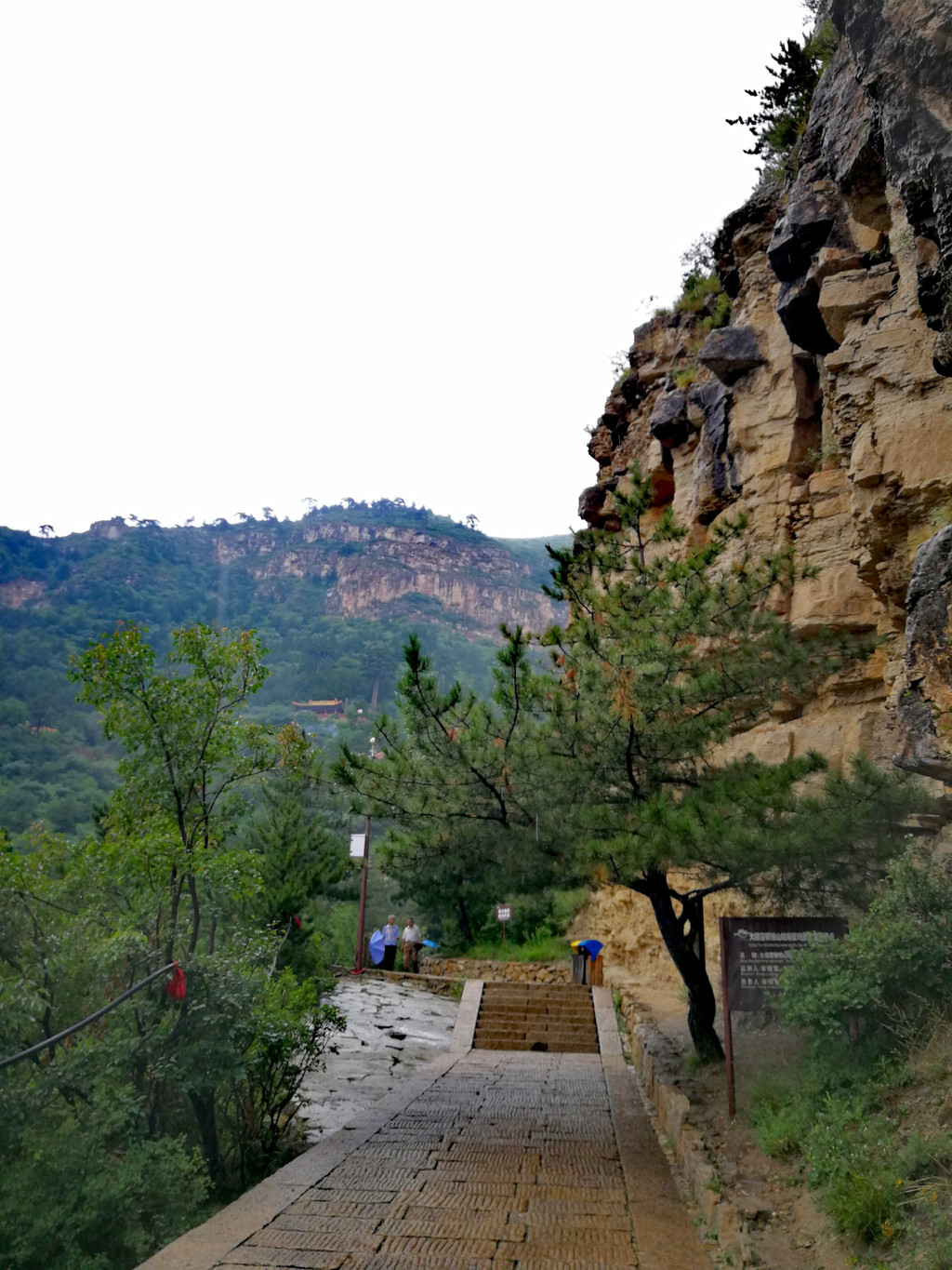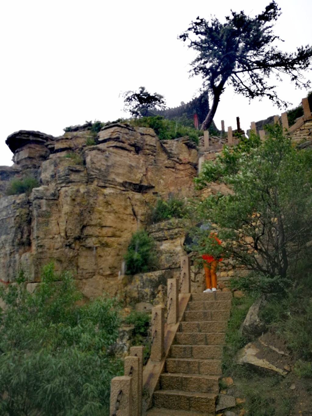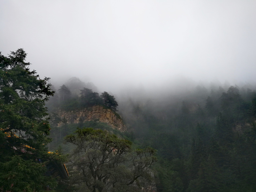 已经基本爬到山顶了,顺着往上再走一点就是恒顶了,可是山顶狂风暴雨大作,雨伞根本撑不住,收伞后瞬间湿身,寒冷刺骨,想到没有必要与大自然风雨作斗争,立马转身下山,应该留遗憾了。可是询问了爬到恒顶的人,山顶只有一个标注恒山海拔的碑,连个亭子也没有,都后悔了。