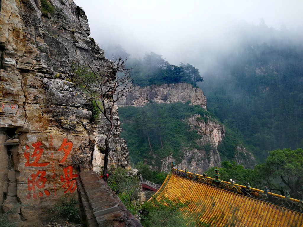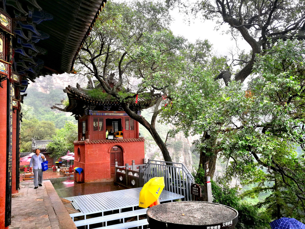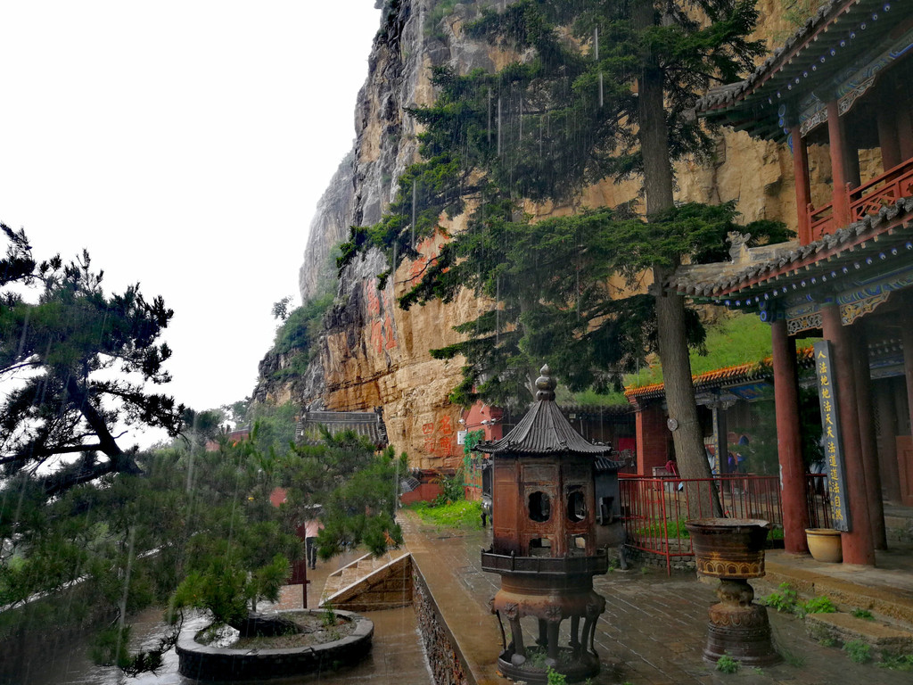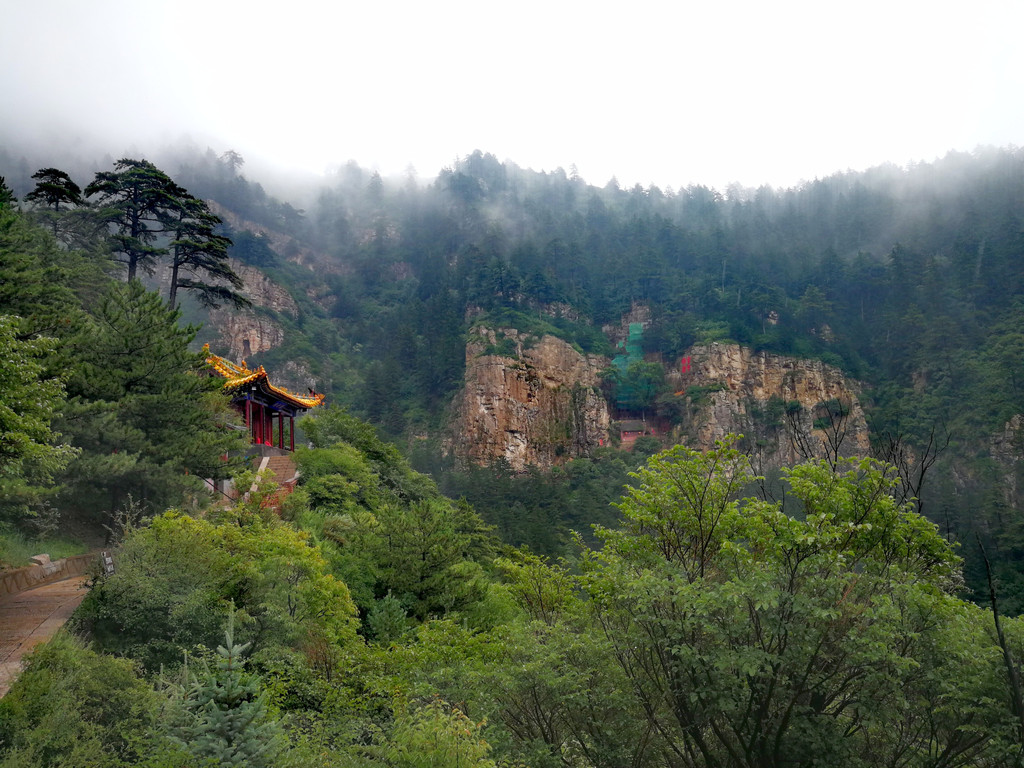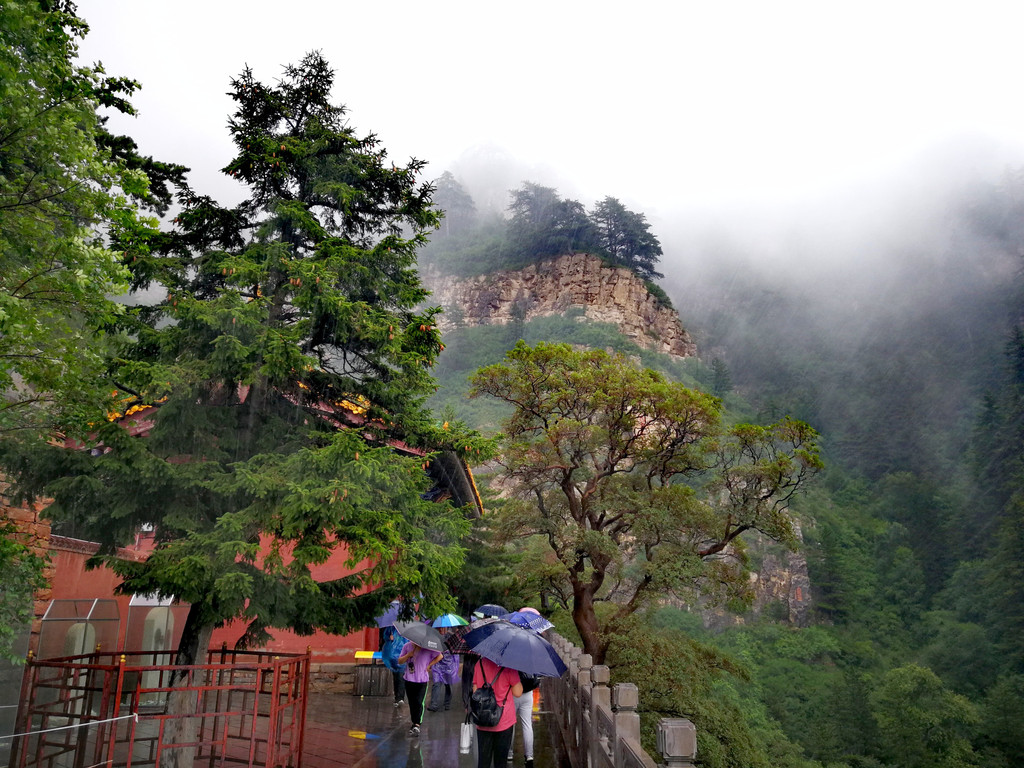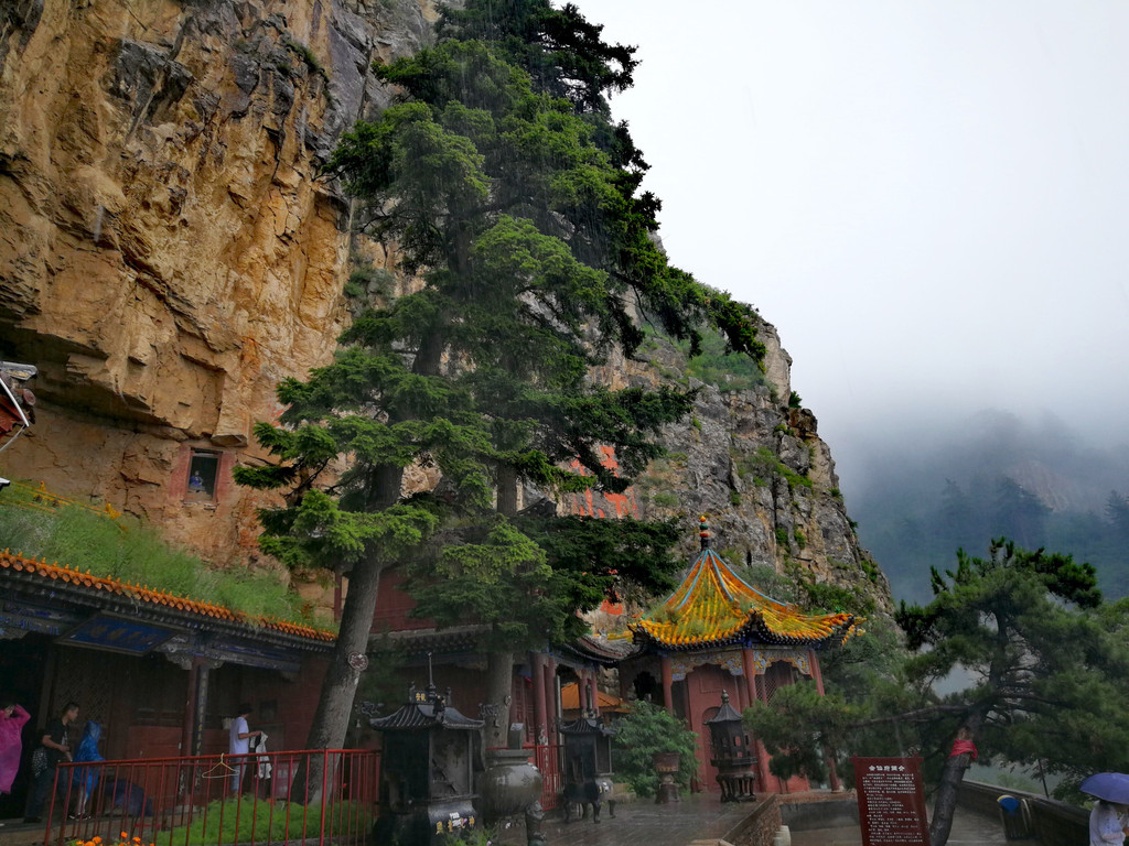 今天冒雨游恒山,至此,五岳都爬过了!