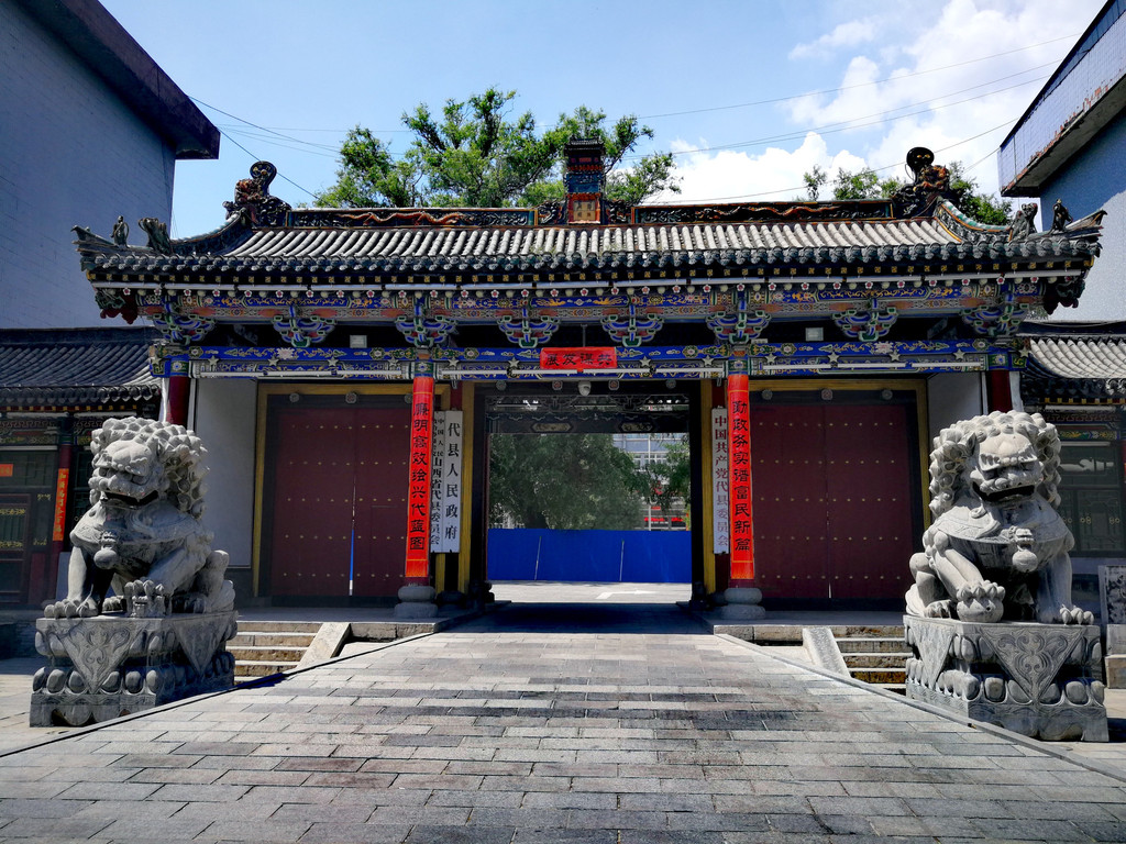 下图为代县县委县府大门: