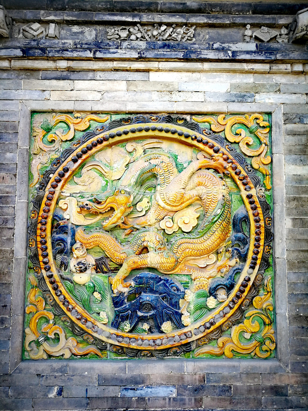 注意看,与北京北海、故宫的九龙壁不同的地方,龙爪为四爪(皇帝的才5爪)。