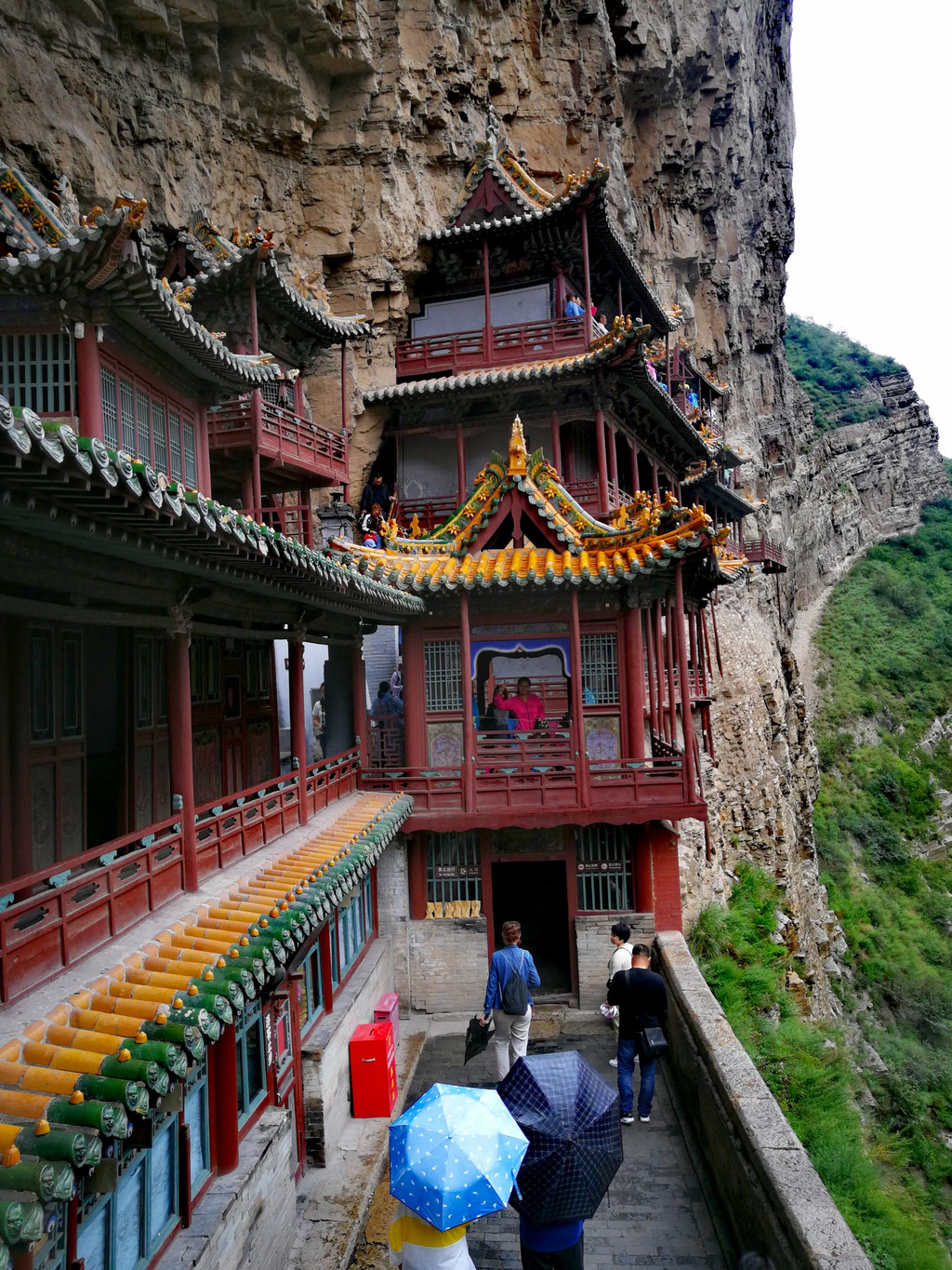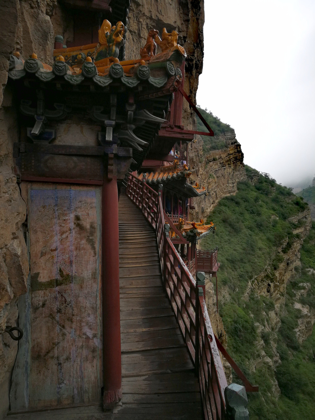 尽管悬空寺的门票已经高达130元(网络115)。但是出于保护文物的需要,再过几年,悬空寺有可能不再让游客上去。所以今天冒雨上一次是及时的、必须的。(如果是晴天来,最好上午光线好)