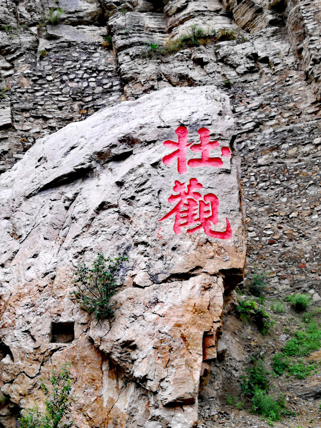 “壮观”两字是李白题写,多一个点,有人说是意犹未尽,我看就是任性。