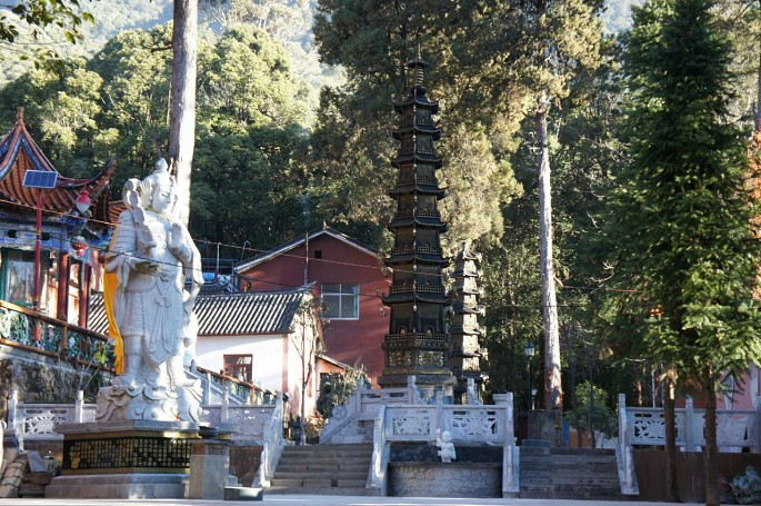 环洱海的公路都是新修的,要是赶在大晴天,路面肯定发出难闻的味道。呵,偶尔可以看见几个“同伴”,装备齐全,骑车从身边过。在他们身上我看到一种伴随着孤独的执着,诠释着旅游本来也是心的流浪。洱海边上的藻泽地,半露出有一些没有叶子的老灌木轮,也不知道年龄,看着是很老了,褪色,干瘪。岁岁年年,不知见过多少往来的人,见证这里种种变迁。车轮没有停下来,远远就看见三塔了,却骑了老半天才到门前。想起在大理网上看过的一句话,看山跑死马,深切体会啊。犹豫考虑到包袱里的大洋不多了,就没有进去了。在旁边广场那里拍了几张照片,买了一小袋夏威夷果,没有大耽搁,就返回古城了。