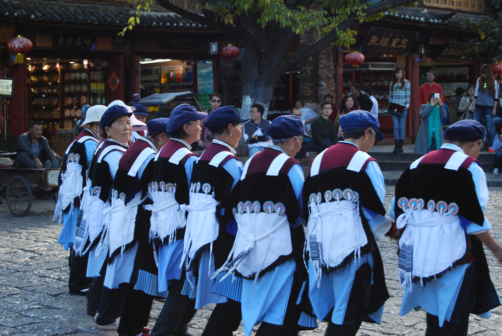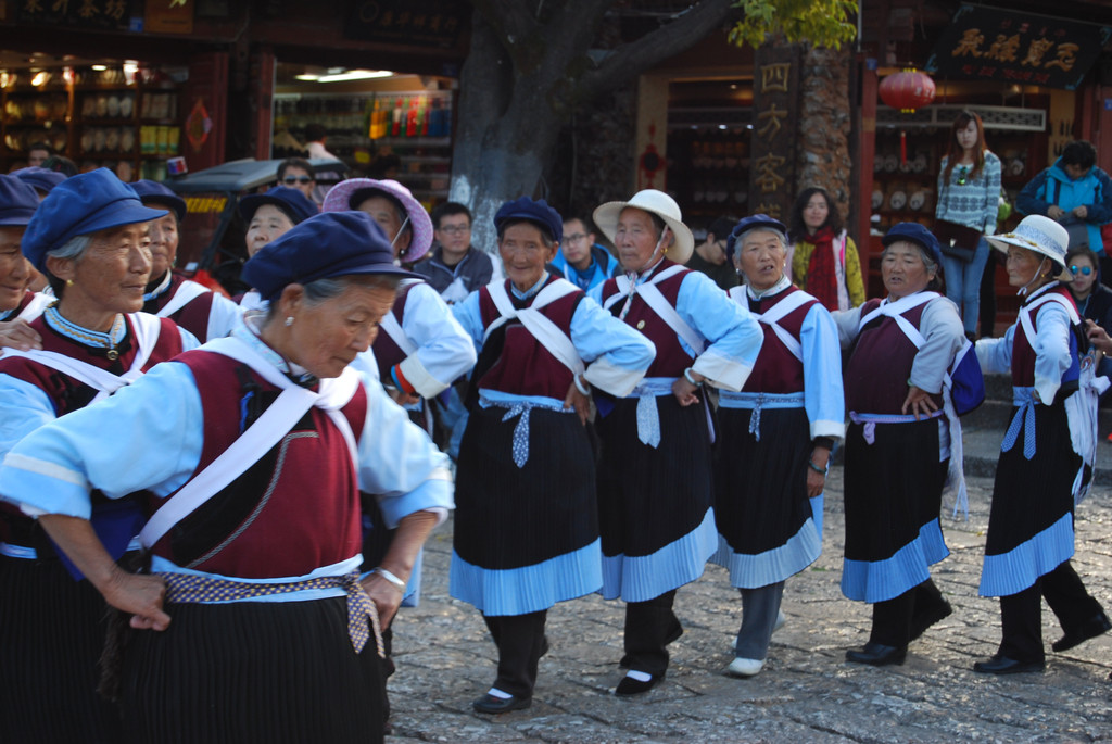 五一中路一直走就到了古城的”四方街“,有一个小广场,偶遇当地广场舞。应该是纳西族的老奶奶,舞步整齐划一。。。这才叫”最炫民族风“。