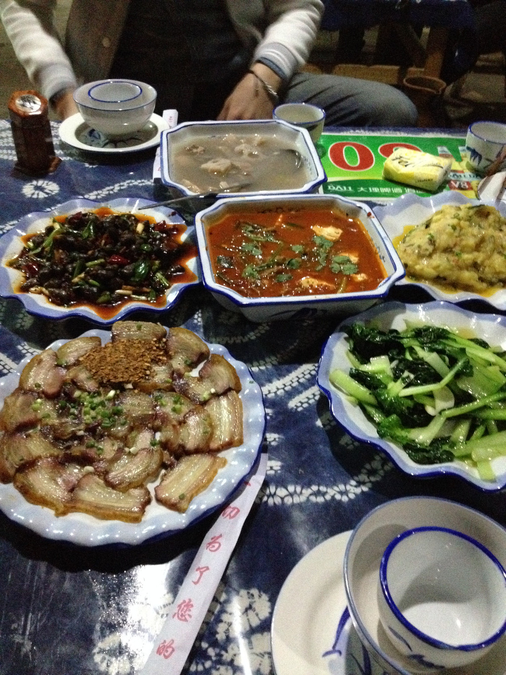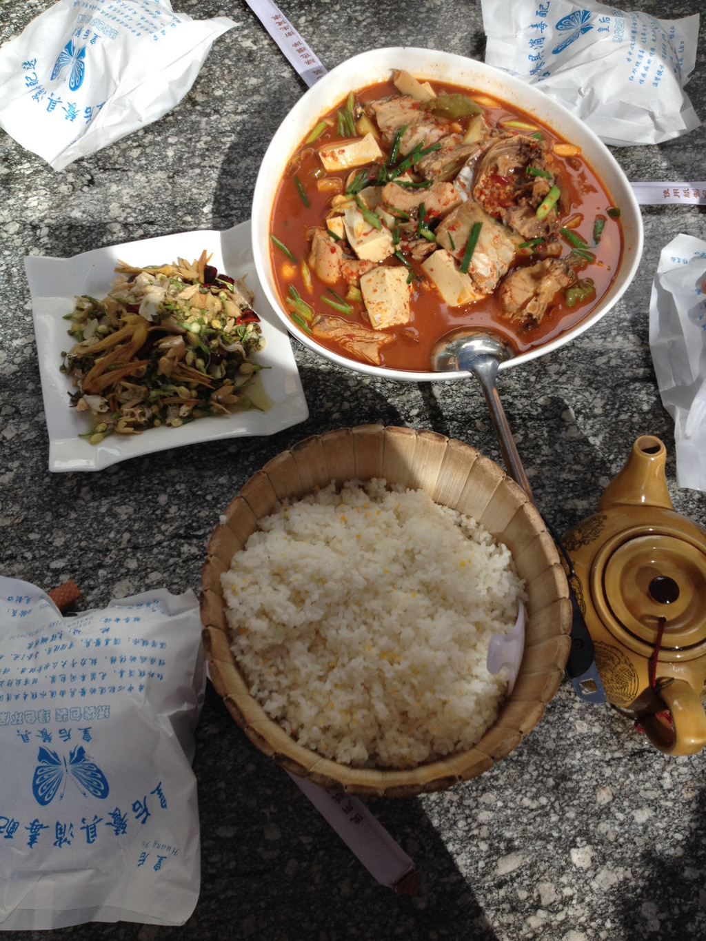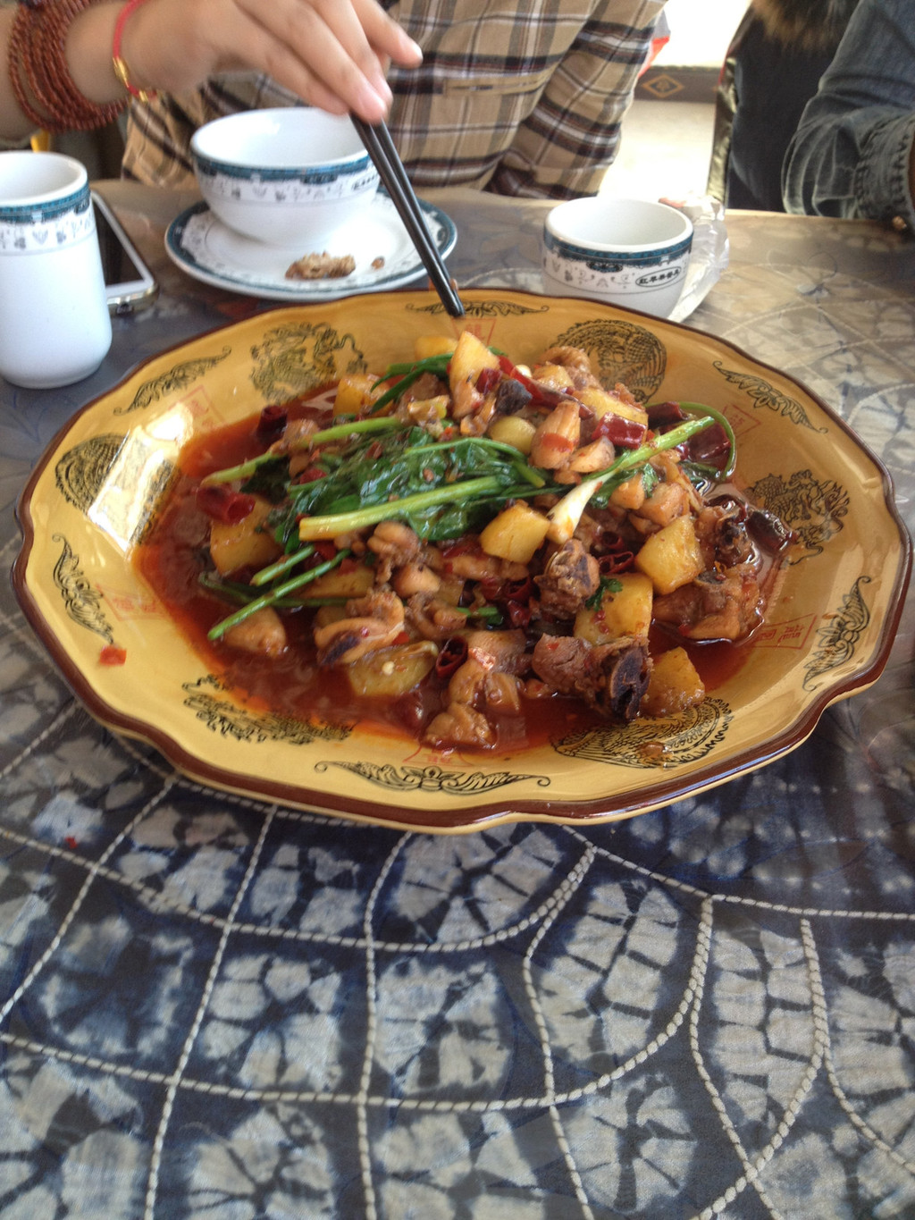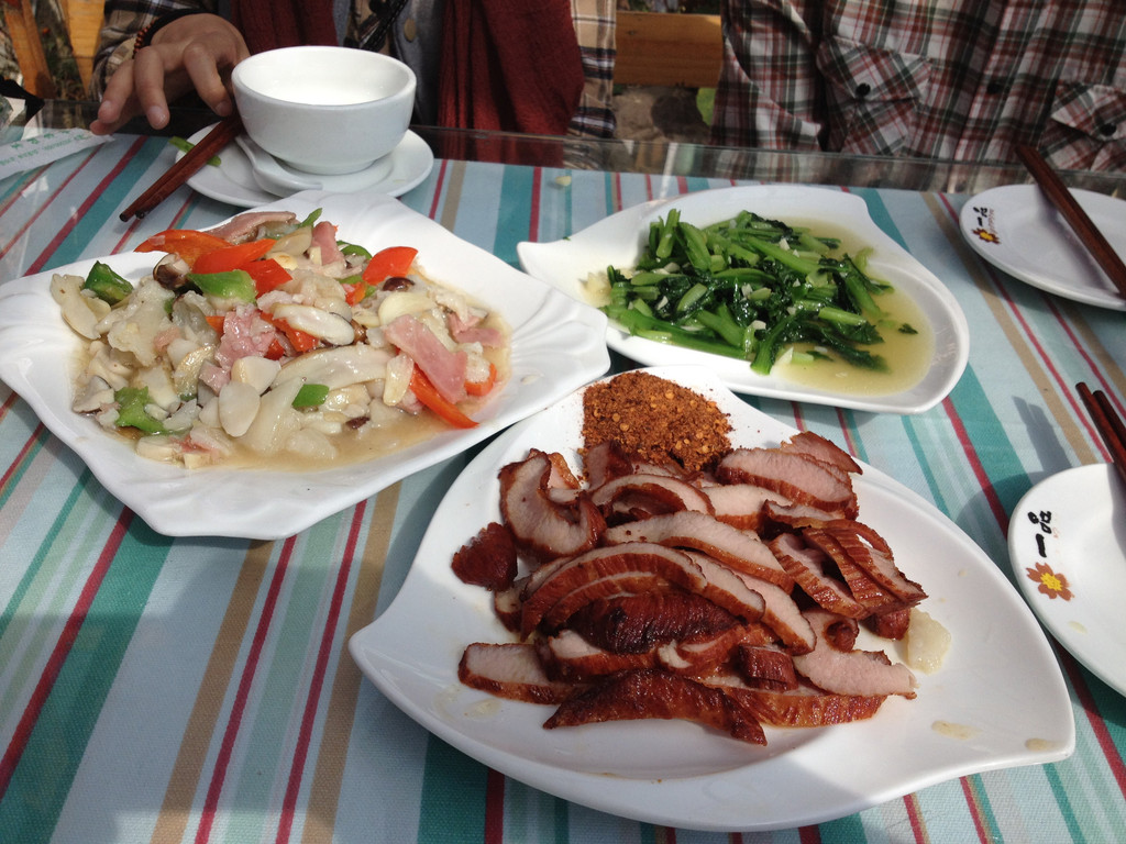 终于等到骑行三人组的归来,中午就近找了一家餐馆(叫啥名字忘了),就在住的客栈附近,饭点也没几个人,但是味道和分量都不错,用“大众点评”付账还打8折~` 4个人每人30元。。。