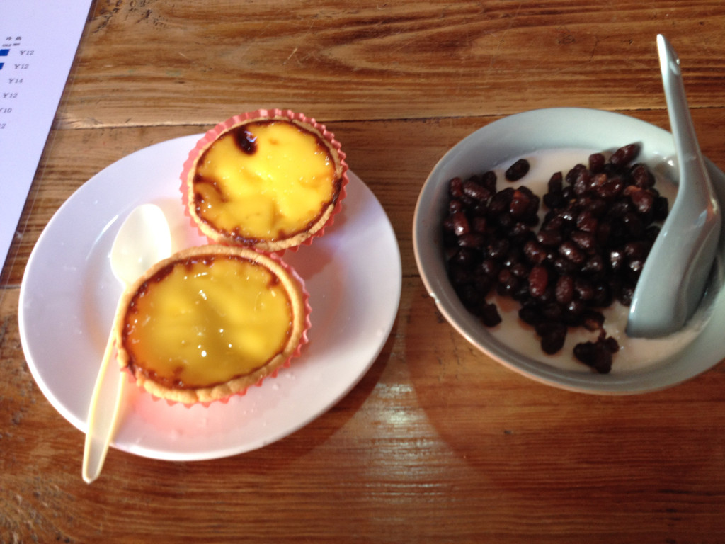 点了个红豆酸奶和蛋挞,味道果然不一般,没有枉费我一番好找。