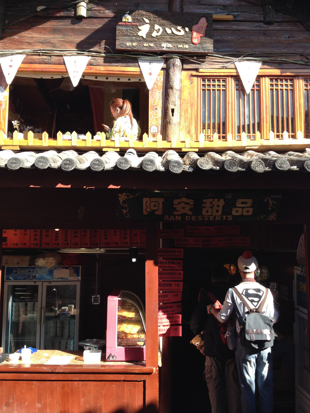 束河整体的面积不大,几个小时就逛完了,大海和燕子约人去拉市海骑马,小海也要陪“孟胖子”去骑马再逛一圈束河。我就不做200瓦的大电灯泡了,主动申请撤离。其实我更想一个人回大研古城悠闲的逛一逛并顺便尝一尝公司刘姐推荐的当地小吃。