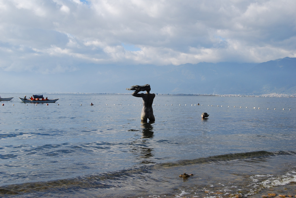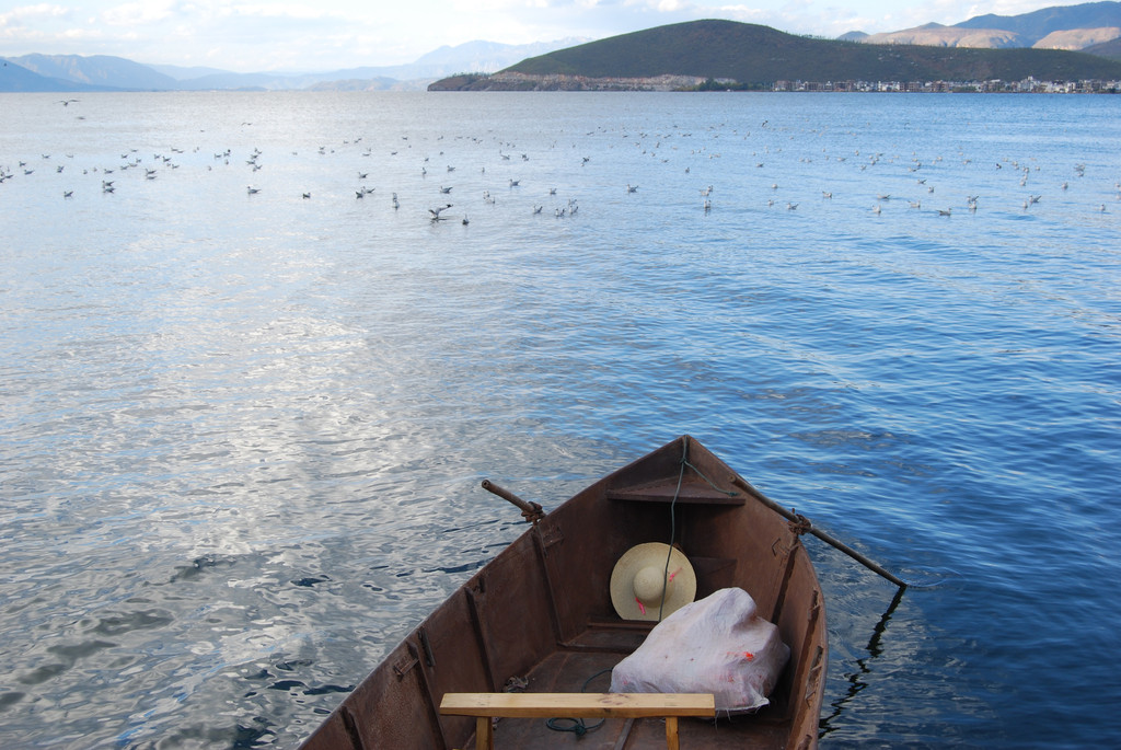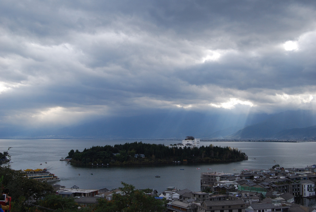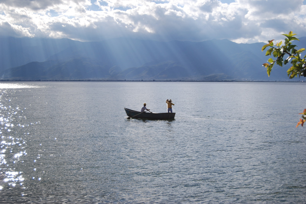 D2,早上到大理后,游大理古城,10点拼车环洱海行,游崇圣寺三塔、喜州民俗村、划船看鱼鹰表演,到双廊,宿双廊。