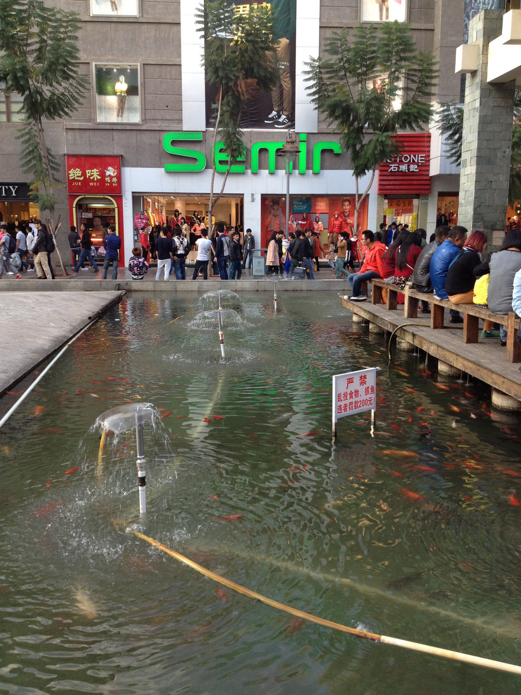 在步行街上养锦鲤,这还是第一次见到。这些鱼是不是晚上直接就到了旁边的川菜馆了~~·(云南的四川人特别的多~~)