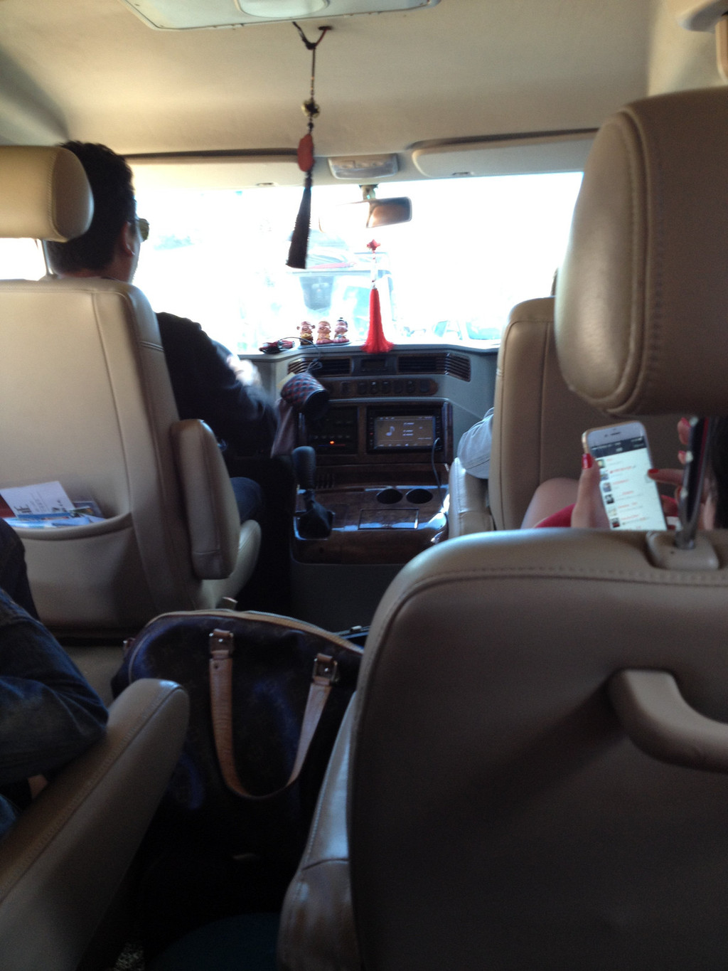 我们很幸运,8个人拼了一辆奔驰商务(2男6女),比一般的面包车舒服太多了。。。