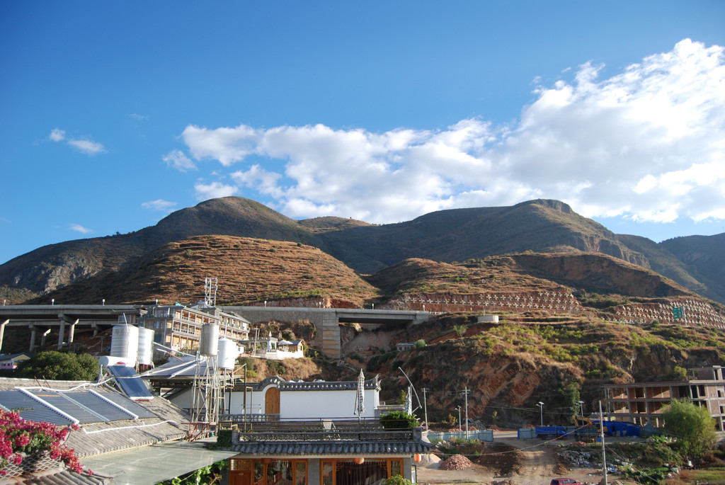 离开束河,先自己溜达一段。。。走在云南乡间的“小路上”(其实是八车道的大马路,不过没有车也没有行人。),抬头看看远处的雪山,抬头望一望湛蓝的天空。。。