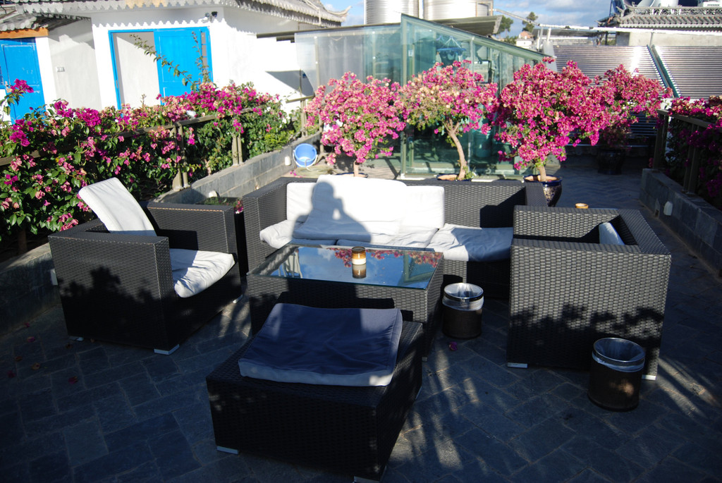 “紫烟庄园”的楼顶,一个晒太阳的绝佳地点。