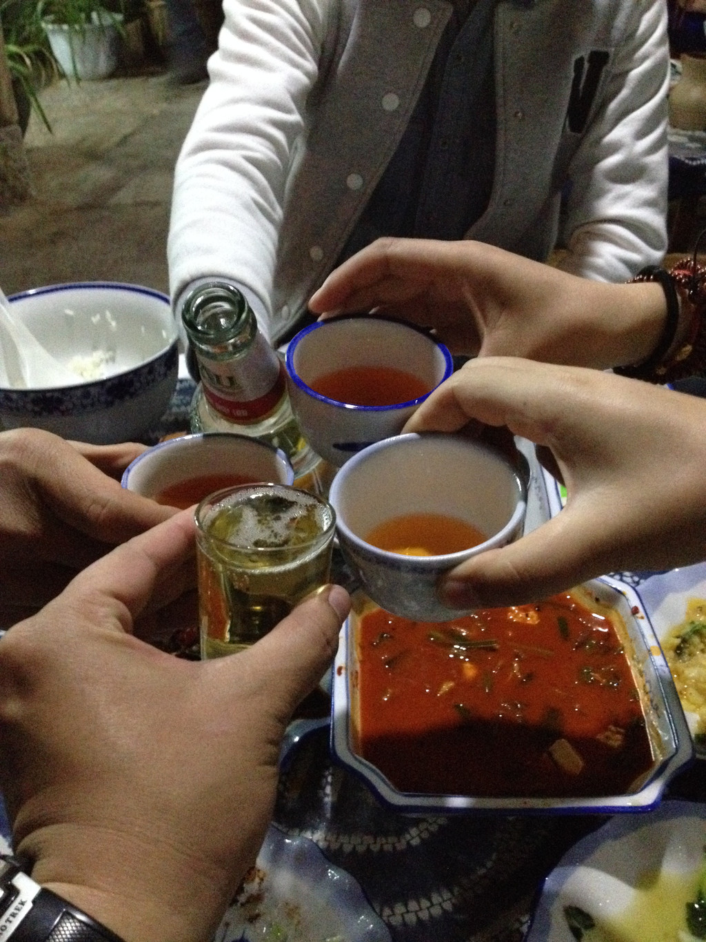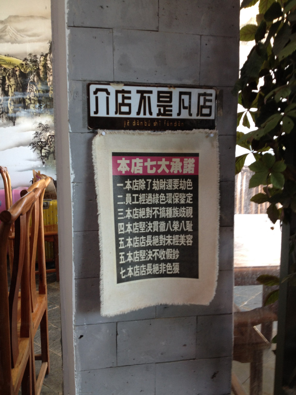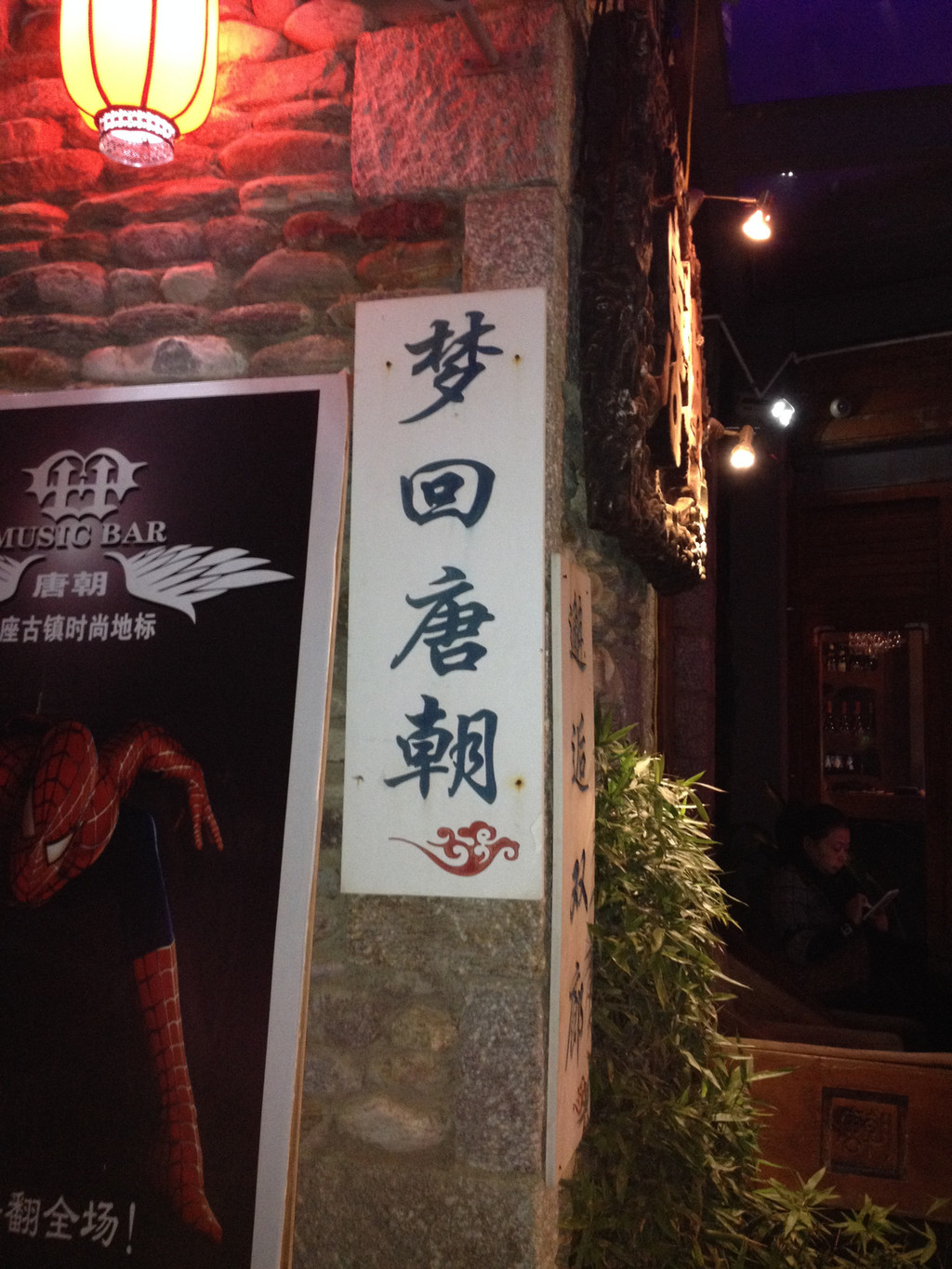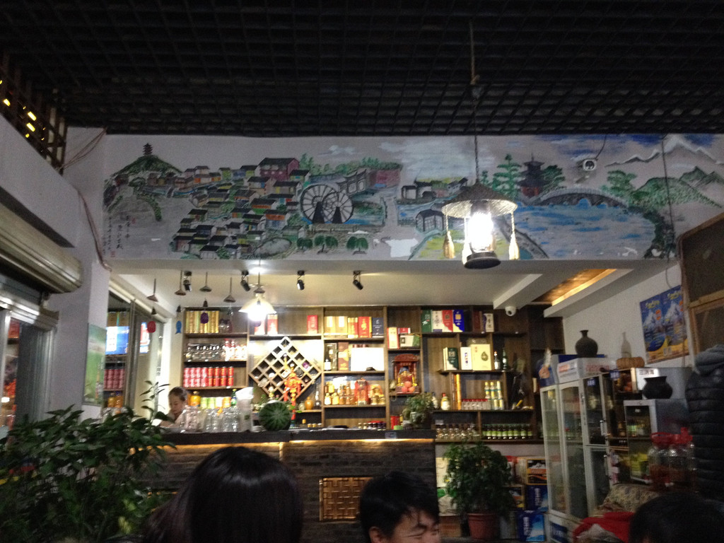 去掉独自一人直奔丽江的“大海”,剩下的5人晚上一起聚餐咯·~有“小海”这个网络从业者,不愁找不到好吃的,“大众点评”评分较高的当地一家饭店,十分不好找。。。每人35元,这就是拼餐的好处!但是说实在的,菜品一般,主要是量少,不够吃的~~~
