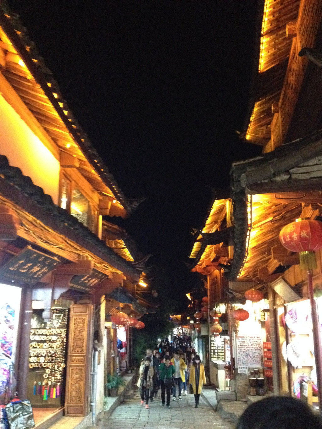 5人要了个大锅,打折后共计300元。。。这顿饭是来云南吃的最饱的一顿,太爽了。吃饱喝足,开始逛丽江古镇。。。