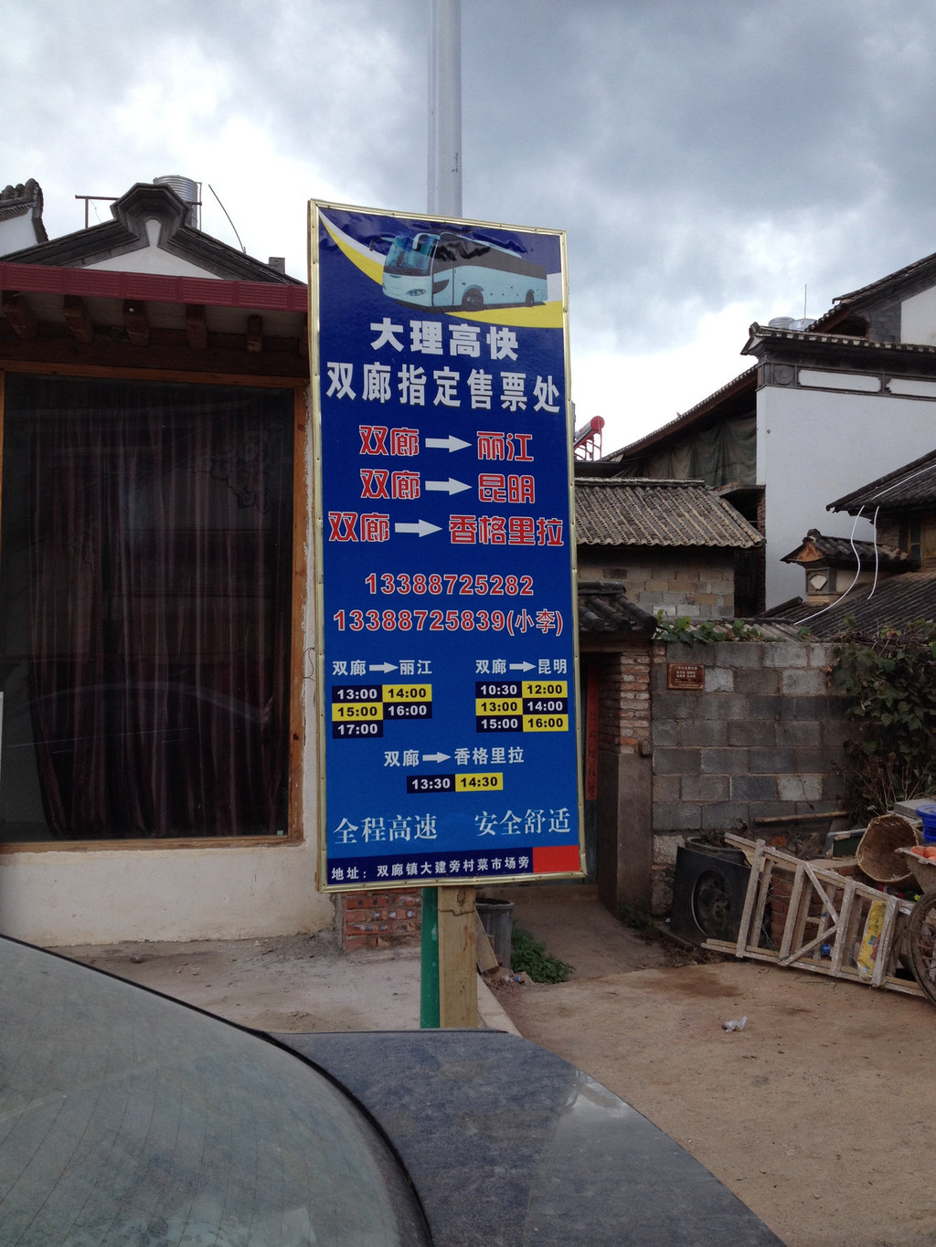 客栈一般都会有拼车业务,告诉老板你想拼车,几个人,几点出发、去哪,老板就会发布这样的求拼车信息,如果到时人凑不齐也没关系,老板会把你送到双廊的车站,由当地的“拼车贩子”再给你安排车辆,其实就类似于有些地方的长途小公共。。自己的车不满员,那就会把你“卖给”另外的车主。如果不想拼车也可以,当地还有大巴,至昆明、丽江、香格里拉。。。从双廊到丽江拼车(这是最省时核算的办法),拼车是每人90.00,大巴是每人80.00,拼车一般6-8人一辆车,好处是半路可以停车拍拍照。。。