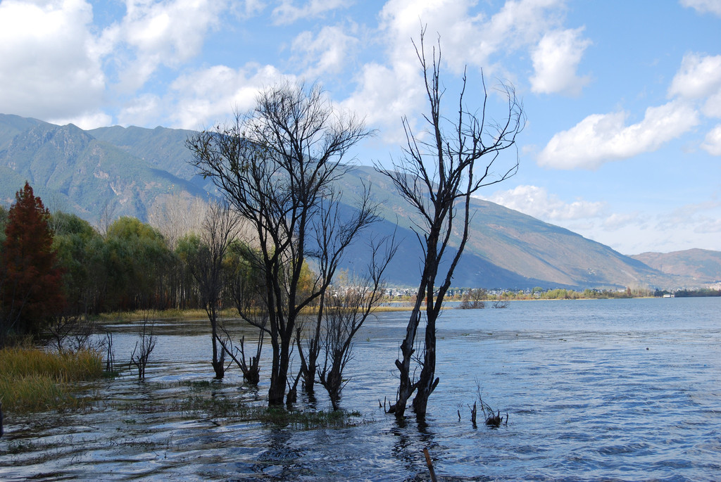 头天一个人先到的“大海”为我们探了探路,说黑龙潭公园门票要80块,“走后门”(即找当地人带路)的话要20块就可以了,关键是没啥意思,地方很小。所以果断PASS掉了。而拉市海,主要娱乐项目是骑马和当地的烤鱼,据说这个地方都被当地的纳西族同胞私人承包了,骑马收费价格从几十元到几百元不等,区别在于:1.你会不会讨价还价,2.老板是不是喜欢你,3,路线的长短,因为路线的长短决定了马儿要走多远的路途~~。体重大人一般不会受待见,因为那会使马儿劳累过度,影响下一拨的客人,呵呵。我这体重,估计老板和他们的马儿都会胆战心惊吧。。。万一马大哥不乐意尥蹶子不干,再有个三长两短,那就得不偿失了。所以安全起见,决定去束河。。。