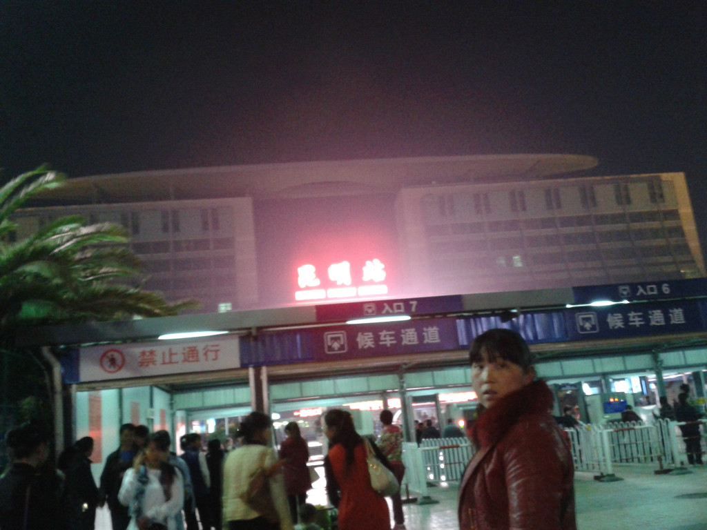 吃饱喝足,又逛了一会步行街,到点了提前到火车站去等车。步行街到头就是公交车枢纽站,有很多去火车站的公交车(不坐公交,也很难打到车,要不然就只能坐黑摩托车),但人比较多,正好赶上安全检查(好像查逃犯)堵了足足一个小时才坐上车~~~。想想刚才警察在公交车上查逃犯的那一幕,又想想上半年发生在昆明火车站的砍人时间,顿时有些忐忑,这是要去”昆明火车站“啊!!大显神威或者被人砍的地方啊!!!到了火车站才发现这担心是多余的,因为这里三步一岗、五步一哨,到处都有持枪的武警。。。从来没有想过,见了警察叔叔会这么的有安全感。想进火车站也变的不那么容易,整个广场被封了起来,进广场就要过安检,进大厅又要安检,比坐飞机都麻烦~~· 哎,安全起见,也就认了!