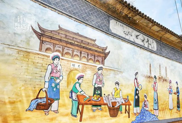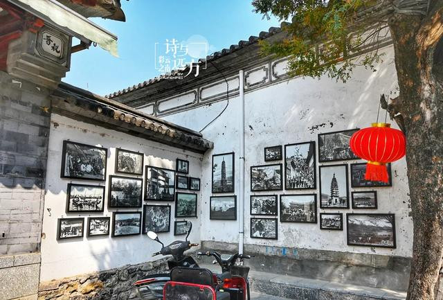 喜洲古镇里有几个大家族的院落,都是由当年首屈一指的富商所建。其中建于1907年的严家大院如今已经成为了收费景点,供游客参观。在镇中心广场四周的墙上还贴了许多黑白历史照片,是这座古镇从解放到发展的珍贵记忆。