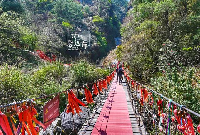 有溪水流过,就能看见吊桥,既有朴实无华的神仙渡,也有挂满了祝福丝带和爱心锁、横跨清碧溪的吊桥。或许因为游客少了很多,原本挂着收费牌子的网红打卡点已无人看管,可以任意拍照~所以说出来玩一定得抓准时机~~