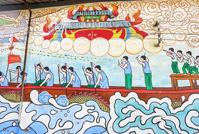 Thomas带我们路过了南村,一座到处都是手绘涂鸦的社会主义新农村,这一路全是惊喜,最后我们发现他们的本主庙就设在村委会里。连寺庙旁边的院墙都涂满了关于本主的传说,其实白族的本主就是村落的保护神,本主庙和我们的“宗祠”很相似,只是除了供奉祖先,庙堂上还供奉了众多神明。