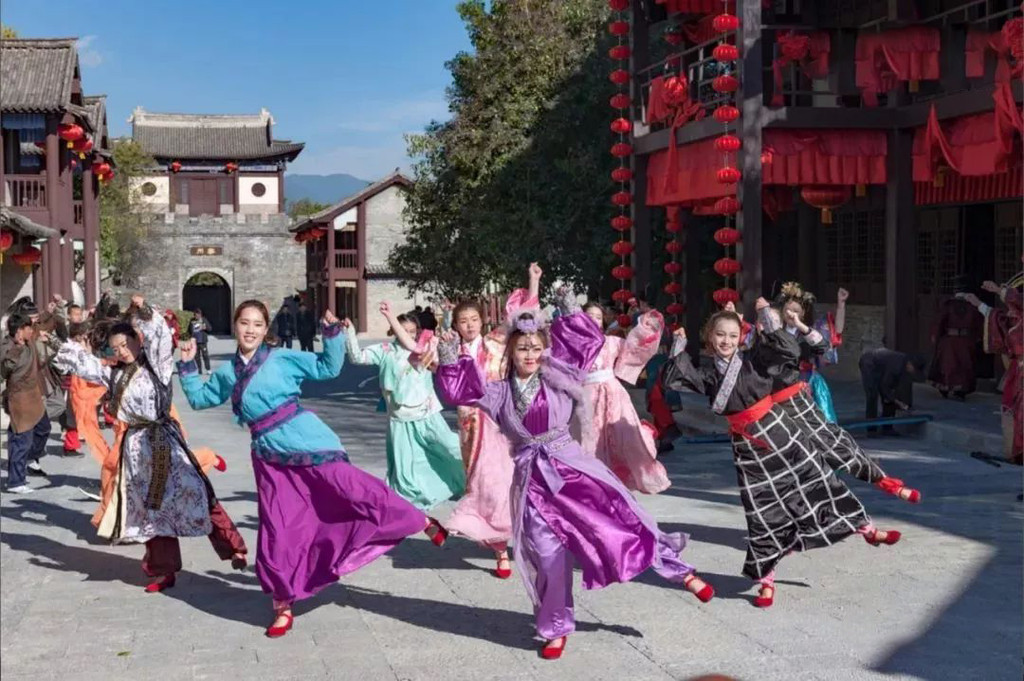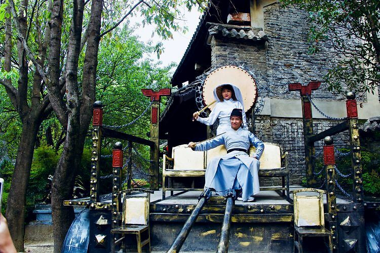 随便在天龙八部影视城的街头闲逛,你还会发现更多影视剧里出现的场景,南诏宫廷乐舞表演、杂技表演、舞狮表演、皮影戏表演......偷偷告诉你,每天的表演都会有时刻表的,别忘了游玩前提前查阅安排好。