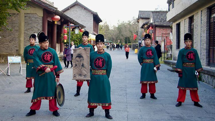 如果锣鼓声敲来的的是官府发布缉拿恶霸赵天霸的悬赏令,那就更加精彩了。你会看见一群身穿古装的“恶霸”正在“调戏”街边买花的小姑娘,然后官府的人便会闻讯赶来,一场激烈的打斗便会接踵而至,像极了古装剧的拍摄现场。(一不小心你就成了群演或者主角,这可比盯着电视屏幕看刺激多了)