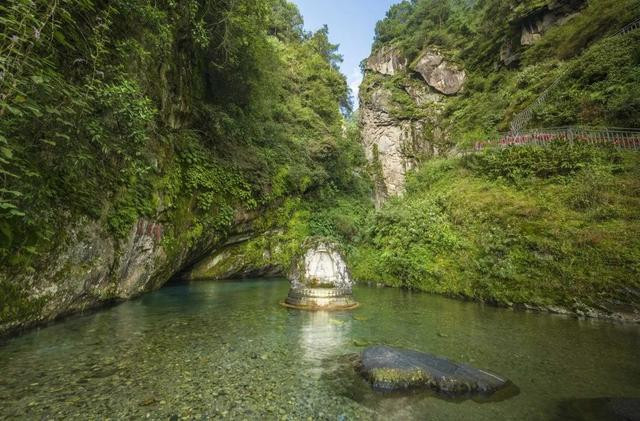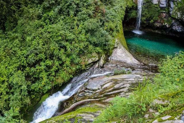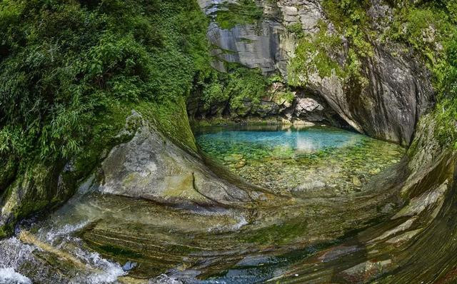 三潭水每一潭颜色、形状各异,下潭水清如玉,水中鹅卵石颗颗可见。