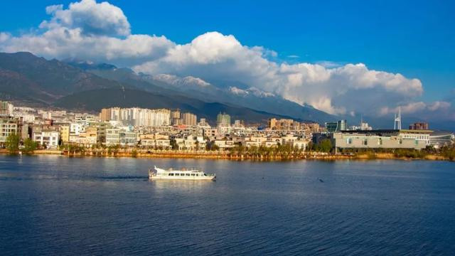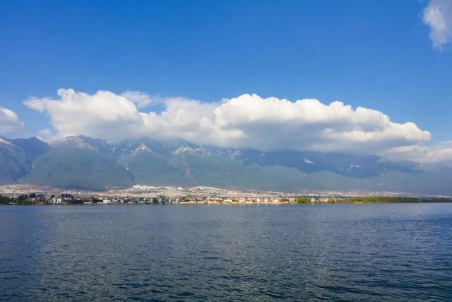 乘坐游船有一个不得不提的优点:览苍山全景,看洱海碧波荡漾。