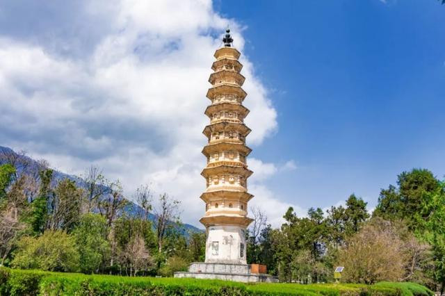 崇圣寺三塔依中轴线而建,所以游览的时候沿中轴线游览,最能体会它宏伟磅礴的气势。