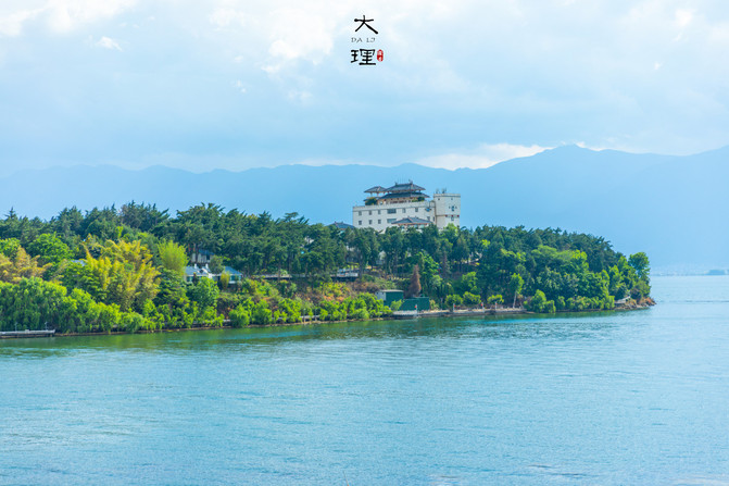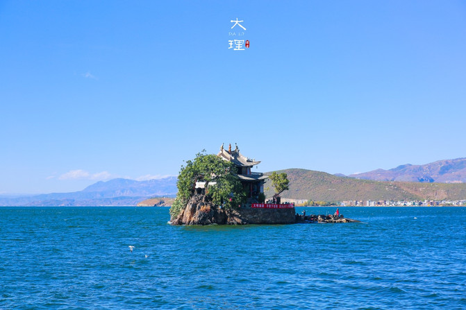 小普陀是洱海五岛中最小的一个,四面环水,位于海中央的一个小岛,只有200多米,全由石灰岩构成,它的形状很像一颗圆形的印章。如果把洱海比作一幅画,那么小普陀的位置正好是落印的地方。