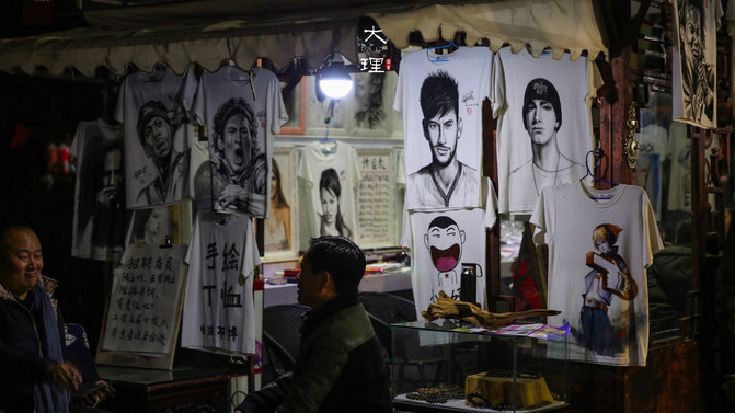 这条由 东至 西的街道并不算长,此前却吸引着来自各地的背包客。从洱 海门 朝着苍山门缓缓上行,卖各种小物件的地摊随处可见,不时还有断断续续的歌声传来。