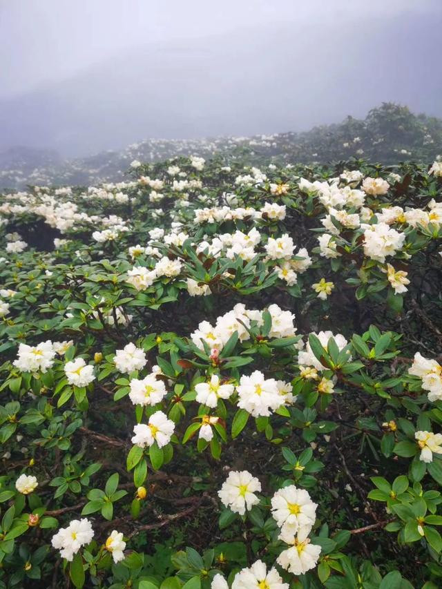散落分布的杜鹃花丛,或星星点点,或簇簇连片,娇嫩的花朵盛放在翠绿的树丛之间,留给你一段浑然天成难以忘记的花海记忆。