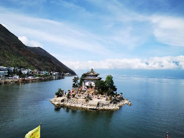 近看小普陀它的景色和布局更加吸引人,小岛虽小但风景醉人,岛上的建筑自带白族气息。