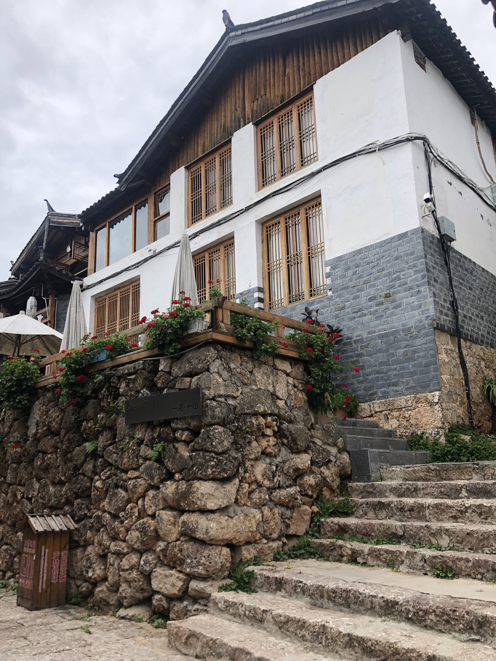 7月25日早,晴 早餐后,出发到白沙镇,打听好路线,大水车左侧出口,出门走到建设银行旁的公交站乘坐11路公交,到丽江家园,换乘6号公交,到白沙壁画。壁画没见到,据说在维护?,白沙镇更古老,保留着更早的纳西建筑。景区不大,没有额外费用。店面也很老旧,商品不乏扎染、纳西绣品、披肩、银器、玉石和各色可能是古老的小物件。发现了一家比较有情调的咖啡店,米良咖啡。惭愧的是我俩都没有尝试他家的特色咖啡,而是选择了玫瑰花茶、冰淇淋和提拉米苏。超级喜欢提拉米苏,很好吃?。玫瑰花茶颜值很高,整朵的玫瑰花开在杯子中,美极了。冰淇淋有淡淡的柠檬味,口感细腻,微甜。一切刚刚好!