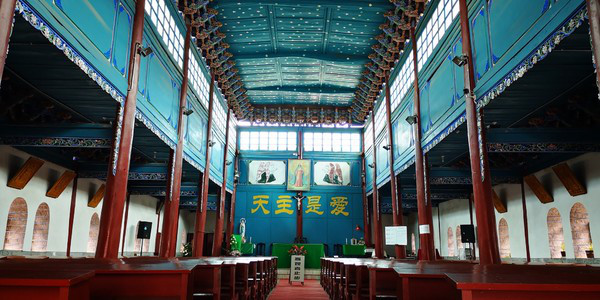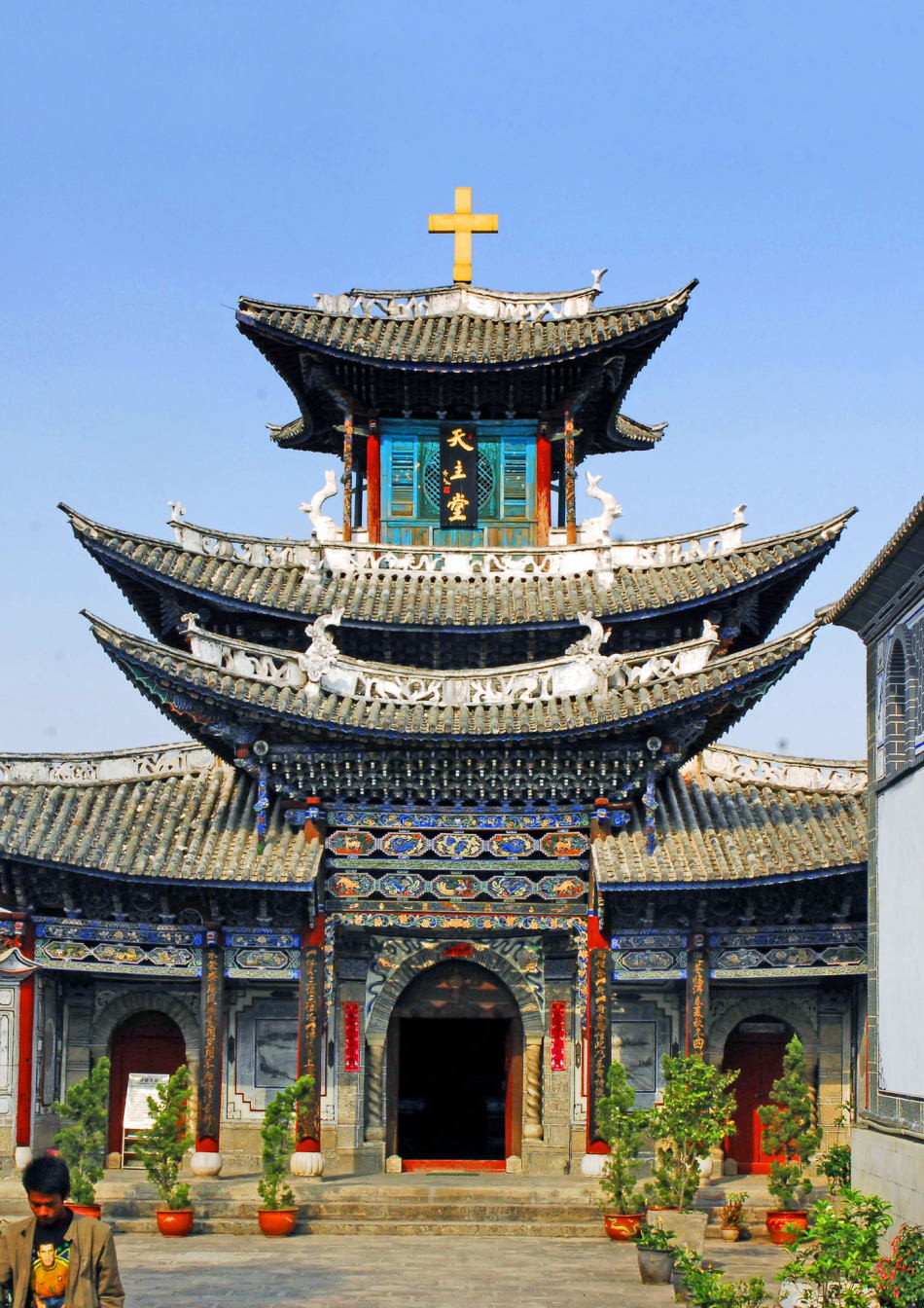 大理古城的天主教堂,藏匿于人民路的一个偏僻的小巷子里,这个教堂很容易被忽略。我安利这个天主教堂的理由,是这个天主教堂独特的风格。外部是白族传统民居的特色,内部是西式教堂的装修。特别是这个做礼拜的大厅,蓝色的装修,天花板上点缀了很多小星星,给人一种夜晚宁静的感觉。历史虽不过百年,但这样的中西文化完美融合的天主教堂,仅大理古城独有。