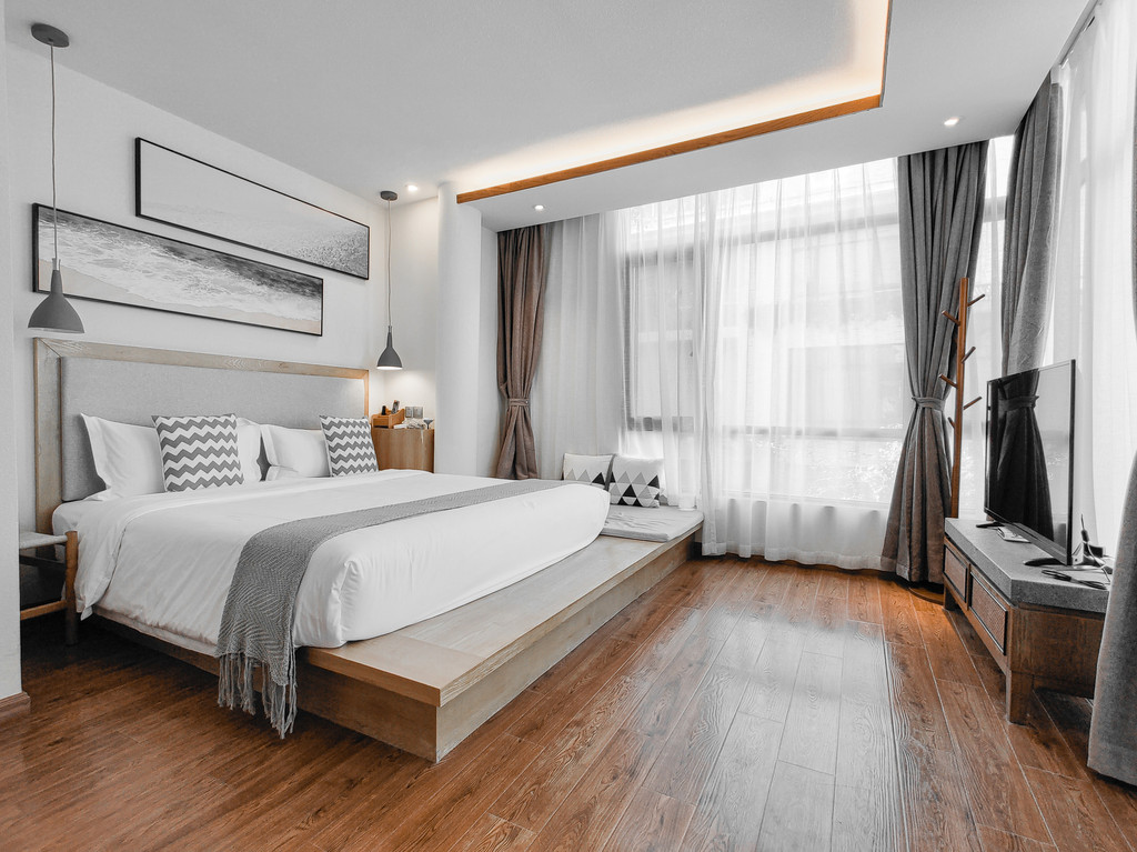 编辑 编辑 编辑整个房间布局合理,床品也很舒服,简约设计还饶有空间留了一块榻榻米的区域。