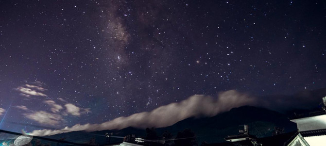 夏日、稻田、星空、山坡、蓝天、白云、瓦屋……
