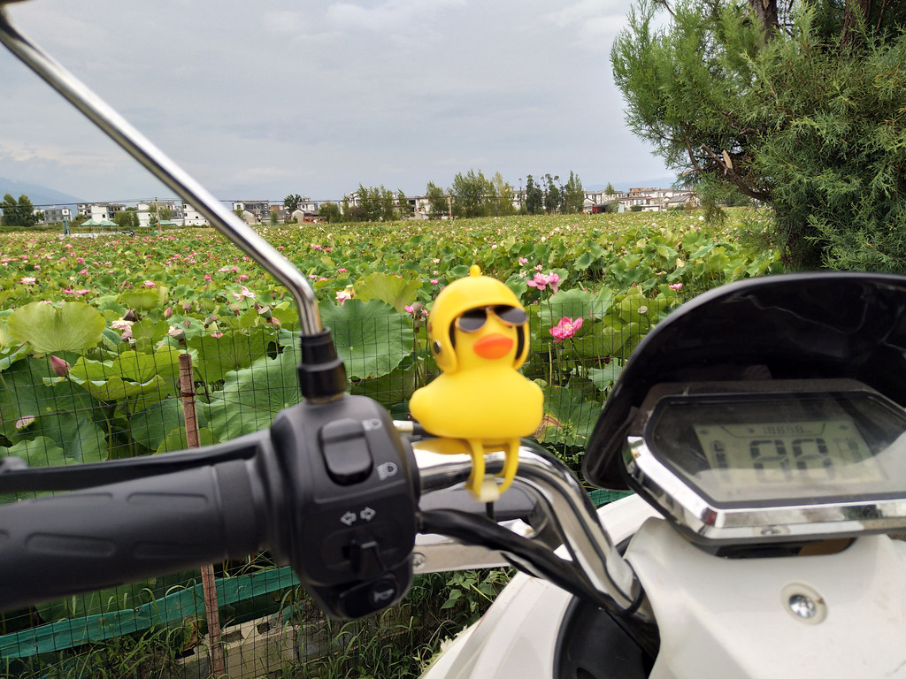 这只酷酷的小黄鸭坐在车头陪着我们从古城到崇圣寺三塔,沿洱海边到喜洲,喜洲到才村码头,返回古城后绕道大理大学转悠了一整天