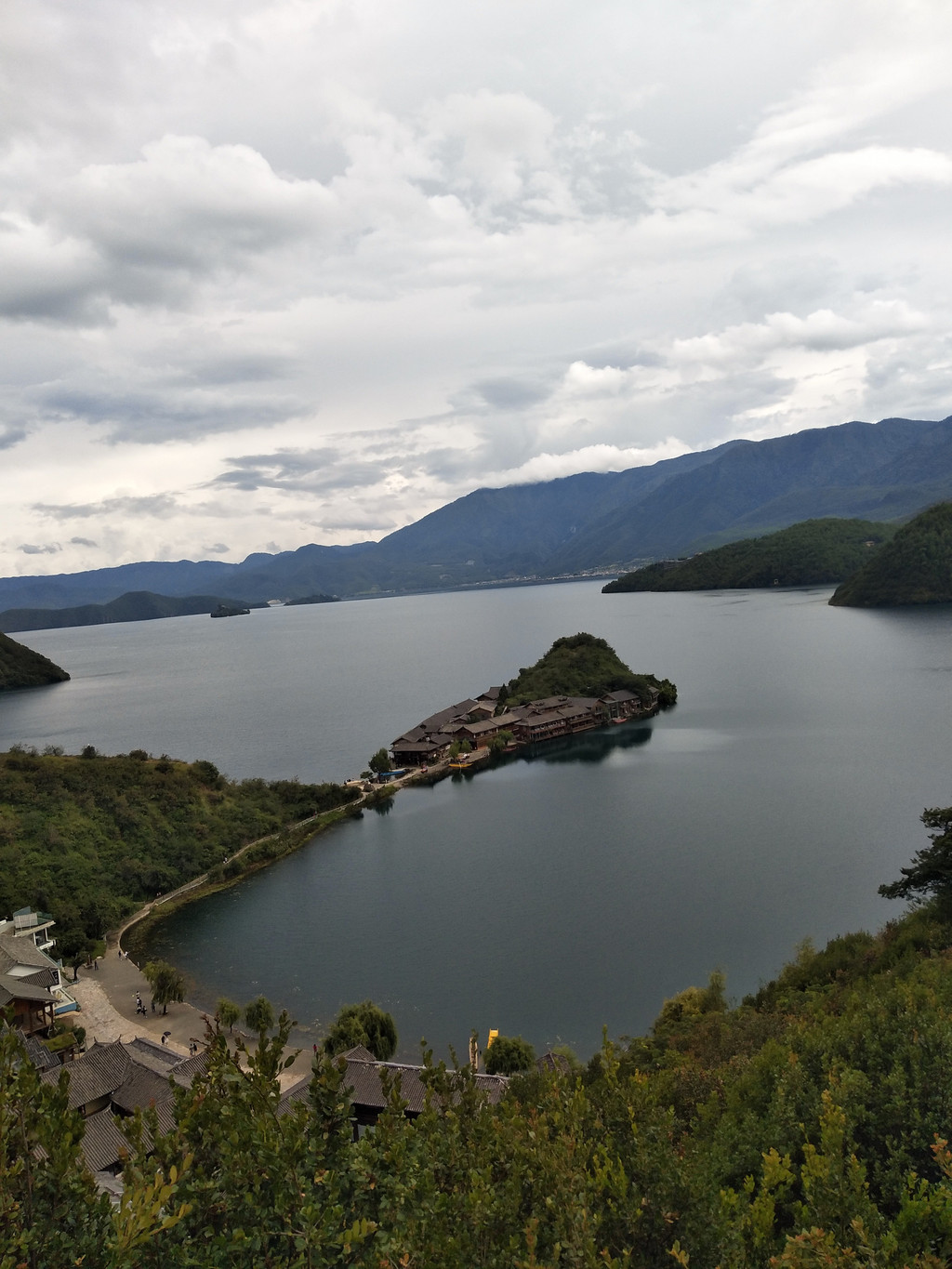 泸沽湖其实离古城并不远,但因为都是盘山公路,差不多花了半天的时间,早上出发中午才到,看网上很多人写的,大落水交通最方便,所以在这里订了湖景房,出门就是湖边,办理入住后赶紧到湖边走走拍两张,然后休息下准备下午环湖,可惜2点开始天就变了,没有了蓝天白云,里格岛拍出来也是暗暗的,然后开始下雨,连车都不能下。直接去吃饭的地方,品尝下女人才能喝的女人酒,到当地人家里听听走婚文化,晚饭后参加篝火晚会去~~