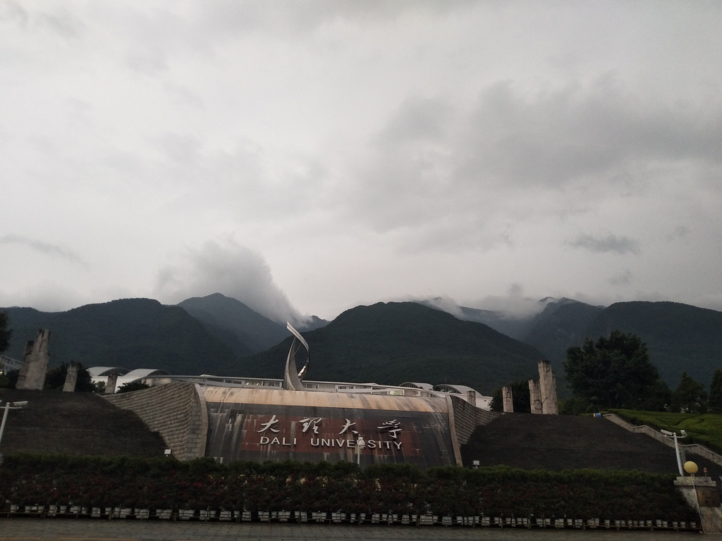 早上吃早餐的时候,遇到一位带着孙子过来陪儿媳妇读研的阿姨,说大理大学特别好,背靠苍山面向洱海,非常好奇,于是在雨中骑行到大理大学门口转转,确实很有气势,山上仙气袅绕~~