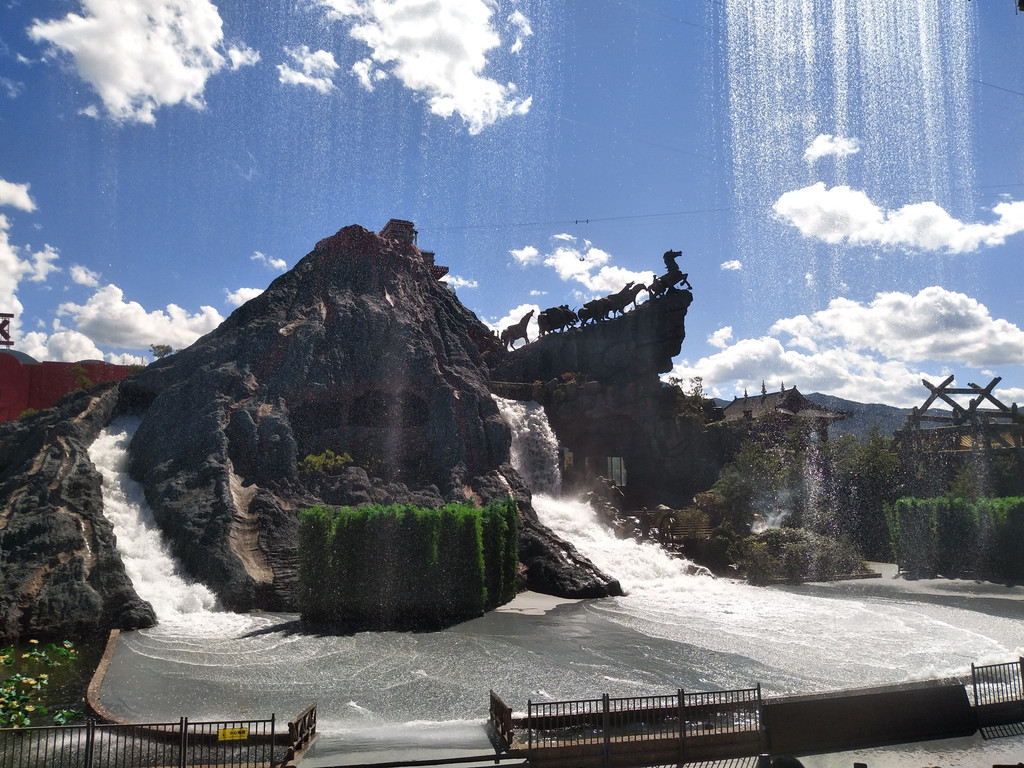 从古城到丽江千古情,有景区免费大巴车,基本是10分钟一趟,如果是白龙广场上车,也就十几分钟就到了,挺近的。这次买的座位挺好,演出时还能感受到水气。
