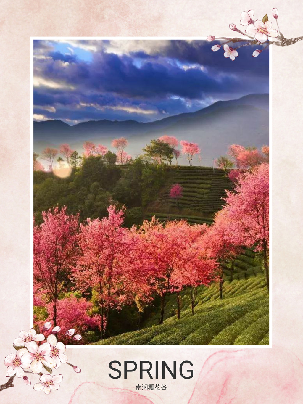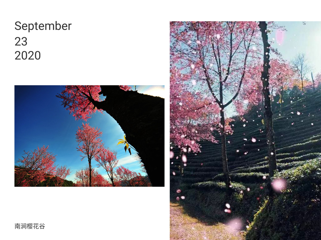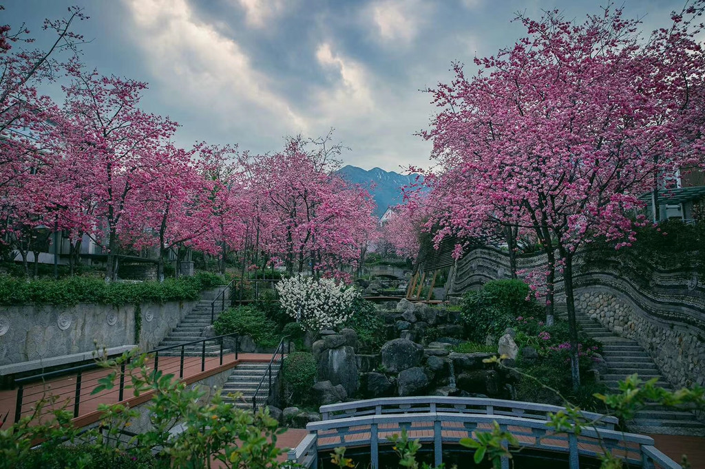 这里是冬季赏樱的好去处,每年11月-12月是赏樱的最佳时节。这里的樱花,原本是当地种茶人随手栽种为树下的茶树遮阴,不料无心插柳柳成荫,冬季数千棵樱花树染红了整个山谷。清晨是赏樱的最佳时刻,雾气笼罩了整个山谷,随着缕缕阳光的透入,雾气渐渐退去,如纱幔般的白雾与粉红的樱花交织在一起,如梦如幻,如人间仙境。