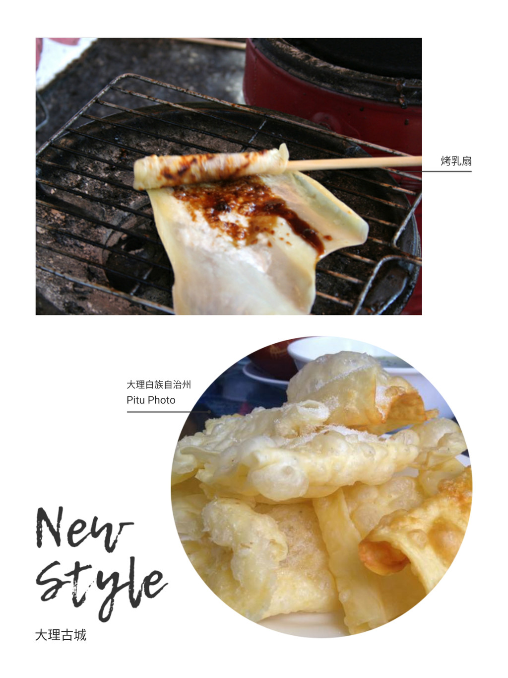 我来大理古城,不为别的,就只是来吃吃喝喝。大理古城里有很多美味,等待着我的发现。路边上的烤乳扇,5块一个,奶香浓郁,嚼劲十足。再裹上甜甜的玫瑰蜜糖,香香甜甜的,真的好吃到爆!