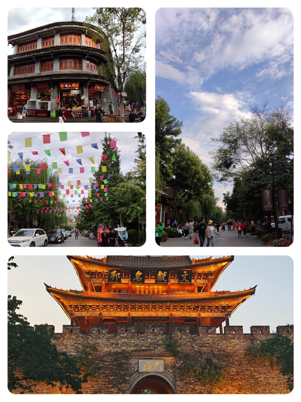 古城给我的感觉是包罗万象的,在这里不仅能看到中西文化的融合,也能看到现代与传统的交融。这里也是一个规模比较大的商贸街,最繁荣的是复兴路,沿路都是鳞次栉比的商店,一路边走边吃,乳扇、饵块、卷粉、小麻花、花果茶……