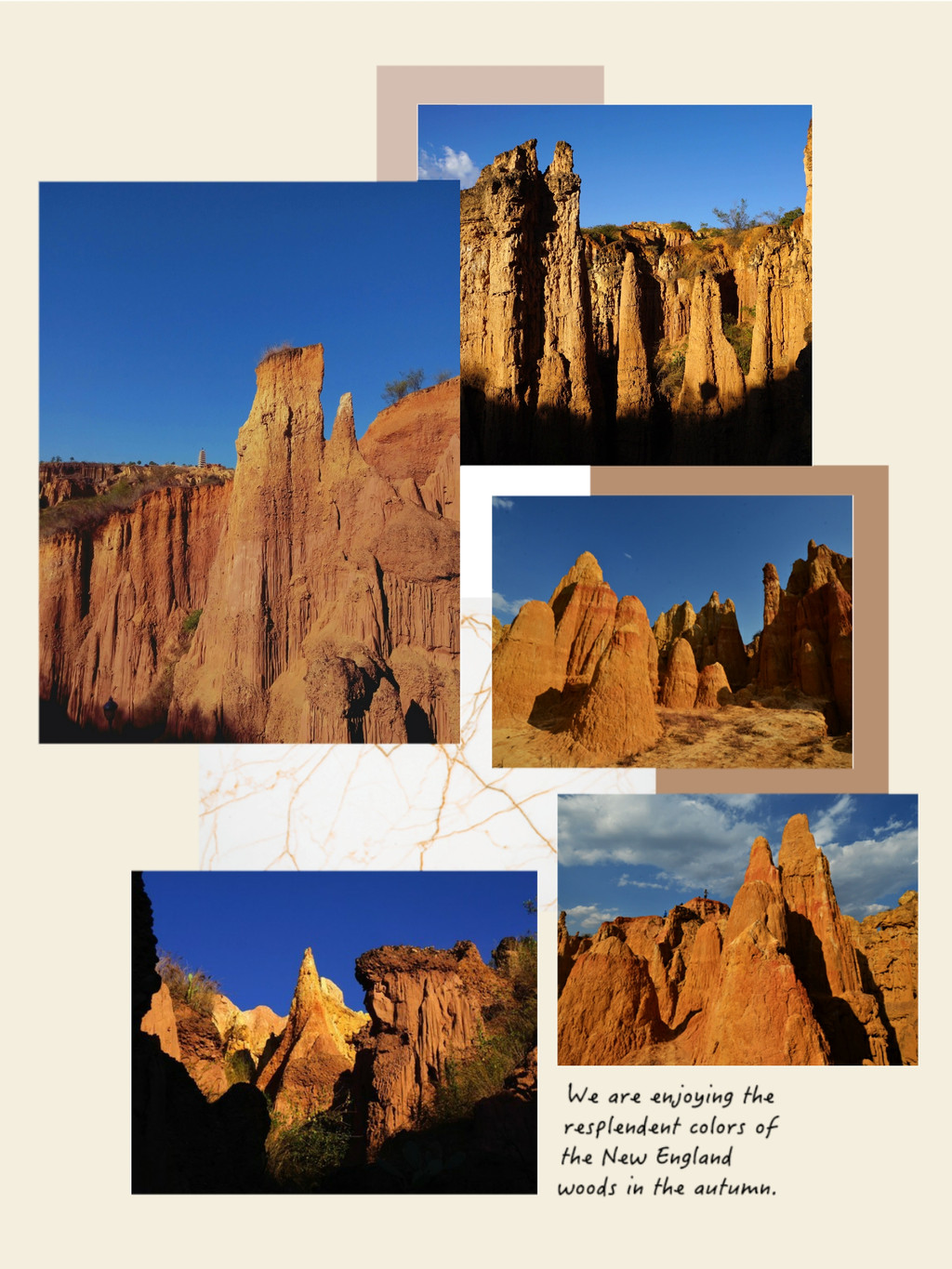 走进这大自然雕塑的艺术魔宫,沿着崎岖的小路在土林中漫游。一会儿钻进了深不可测的洞穴,一会儿走进幽暗狭窄的谷底,一会儿又登上巍峨险峻的高峰。群峰峥嵘,姿态万千,整个土林奇观尽收眼底。