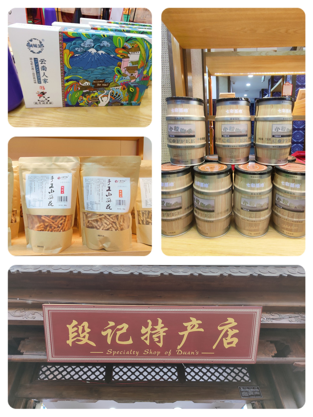 古城里,我比较喜欢一家叫段记土特产的店,在红龙井。这家店有很多好吃的大理土特产,有火腿、雕梅、牛肉干、果糕等小零食,进店免费试吃,每一种都很好吃。对于我这样吃货来说,真的是一个吃货的天堂。